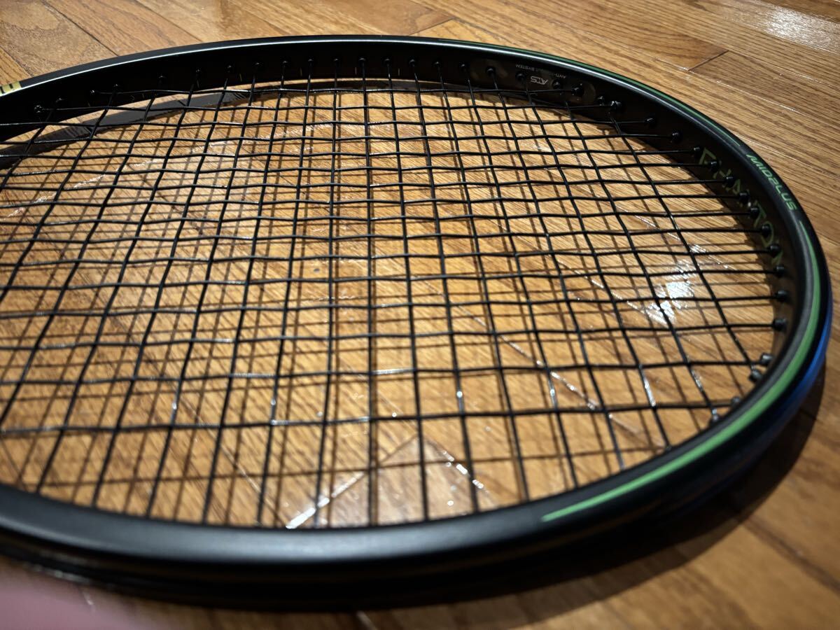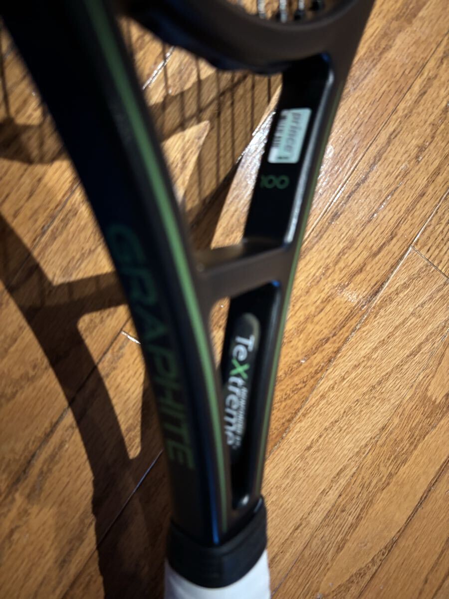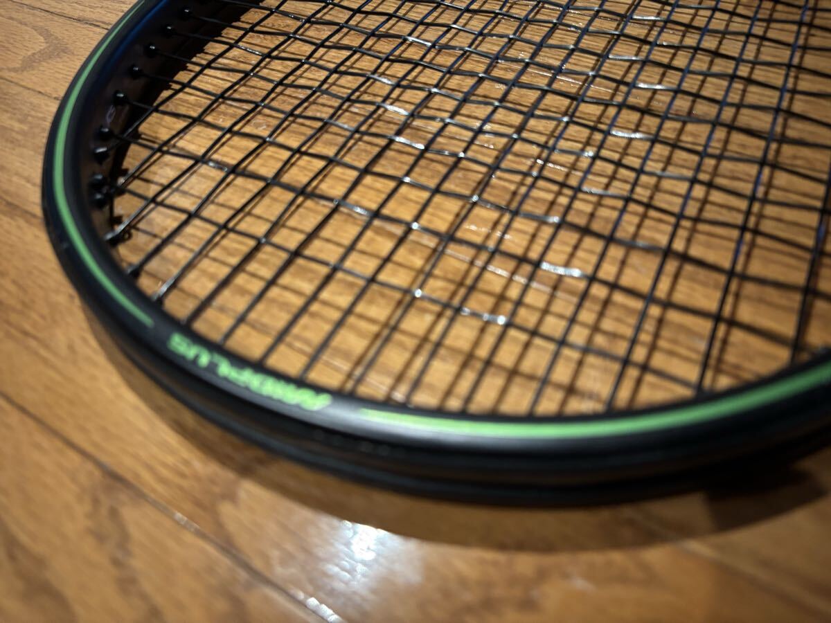 昨年6月頃このオークションで落札しました 7月に現行品が発売されそちらを購入しましたのであまり使用していません 程度はいいと思います 個人的には現行に劣らず戦えるラケットだと考えます ガットはプリンスナイロンガットを58/55で張ったと思いますが半年以上経過していますのでおまけとお考えください ラケットケース付属します