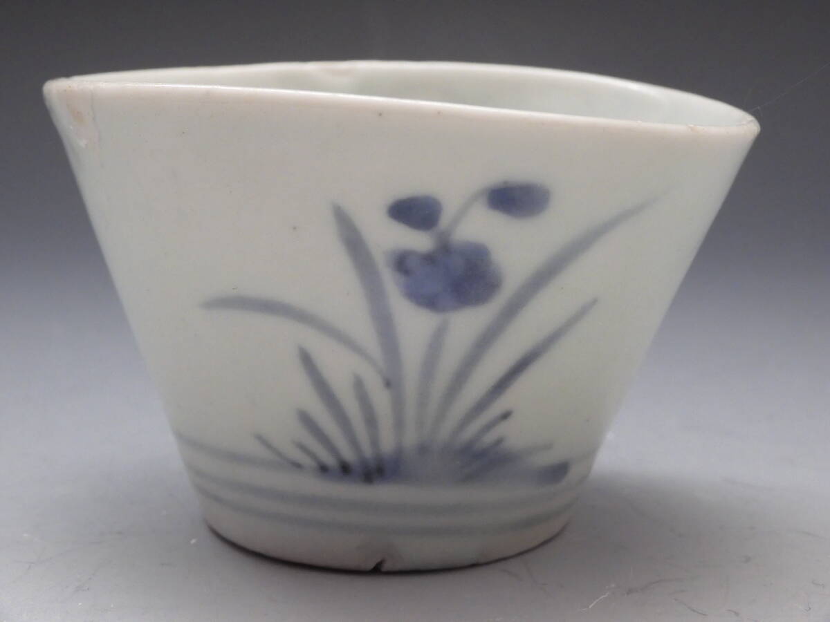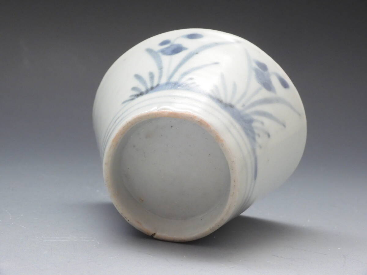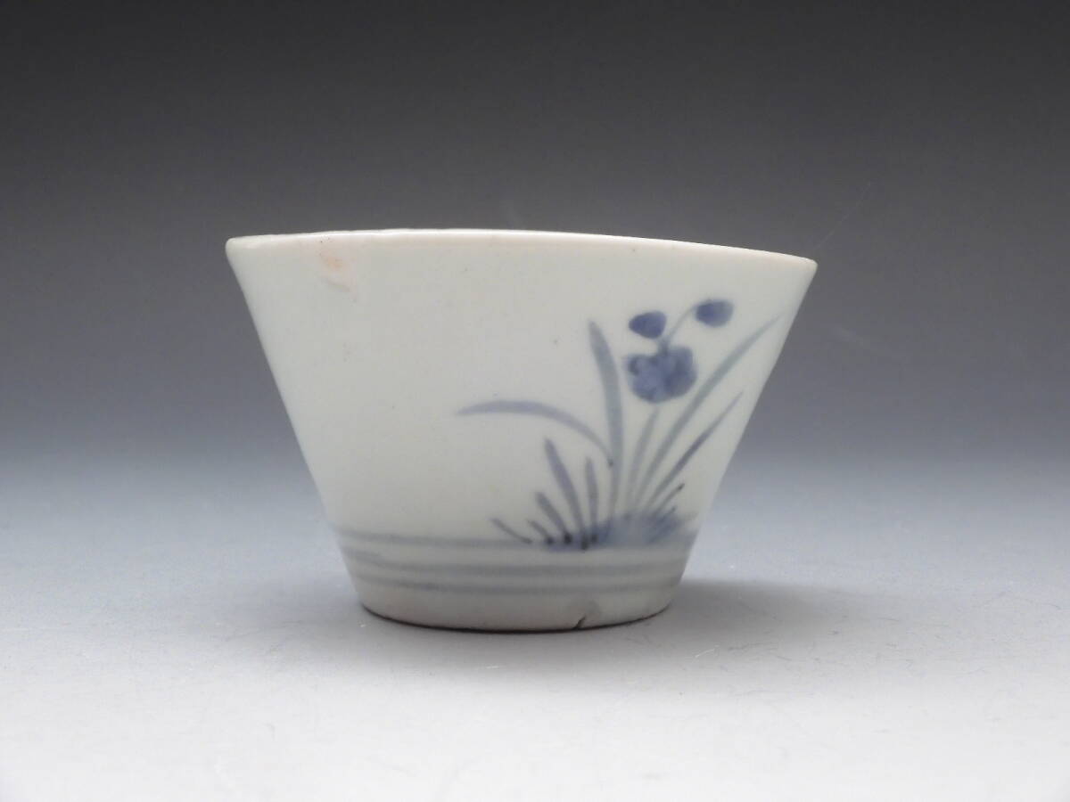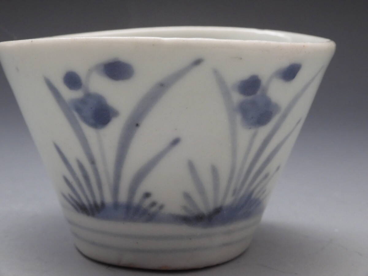 | ○梗○初期伊万里 染付 菖蒲文 蕎麦猪口 無傷 江戸初期 K130◇ |
