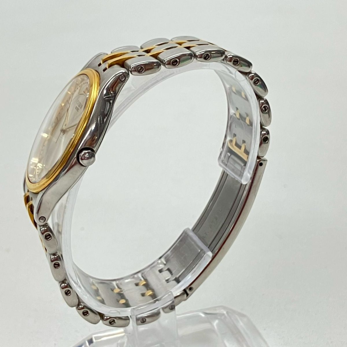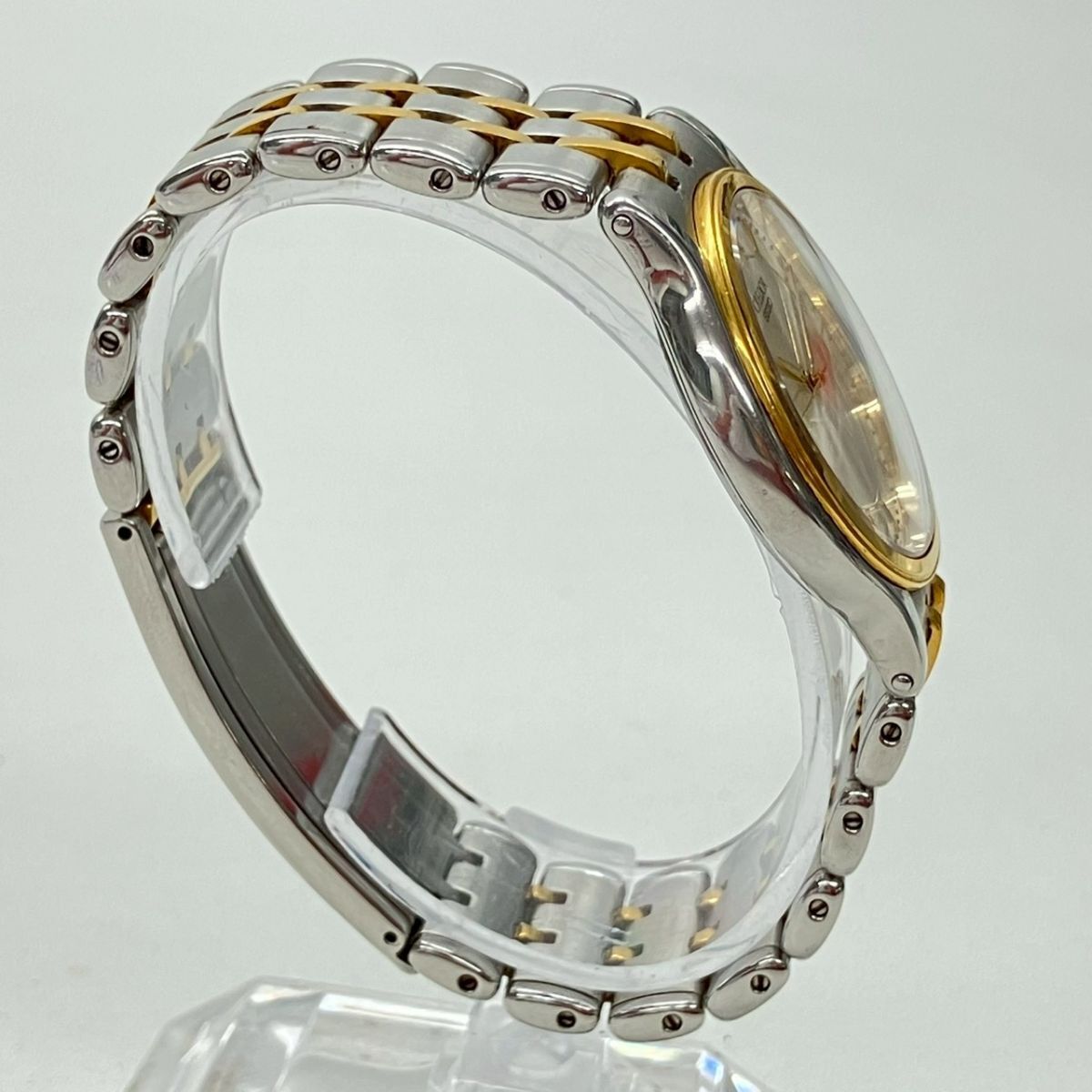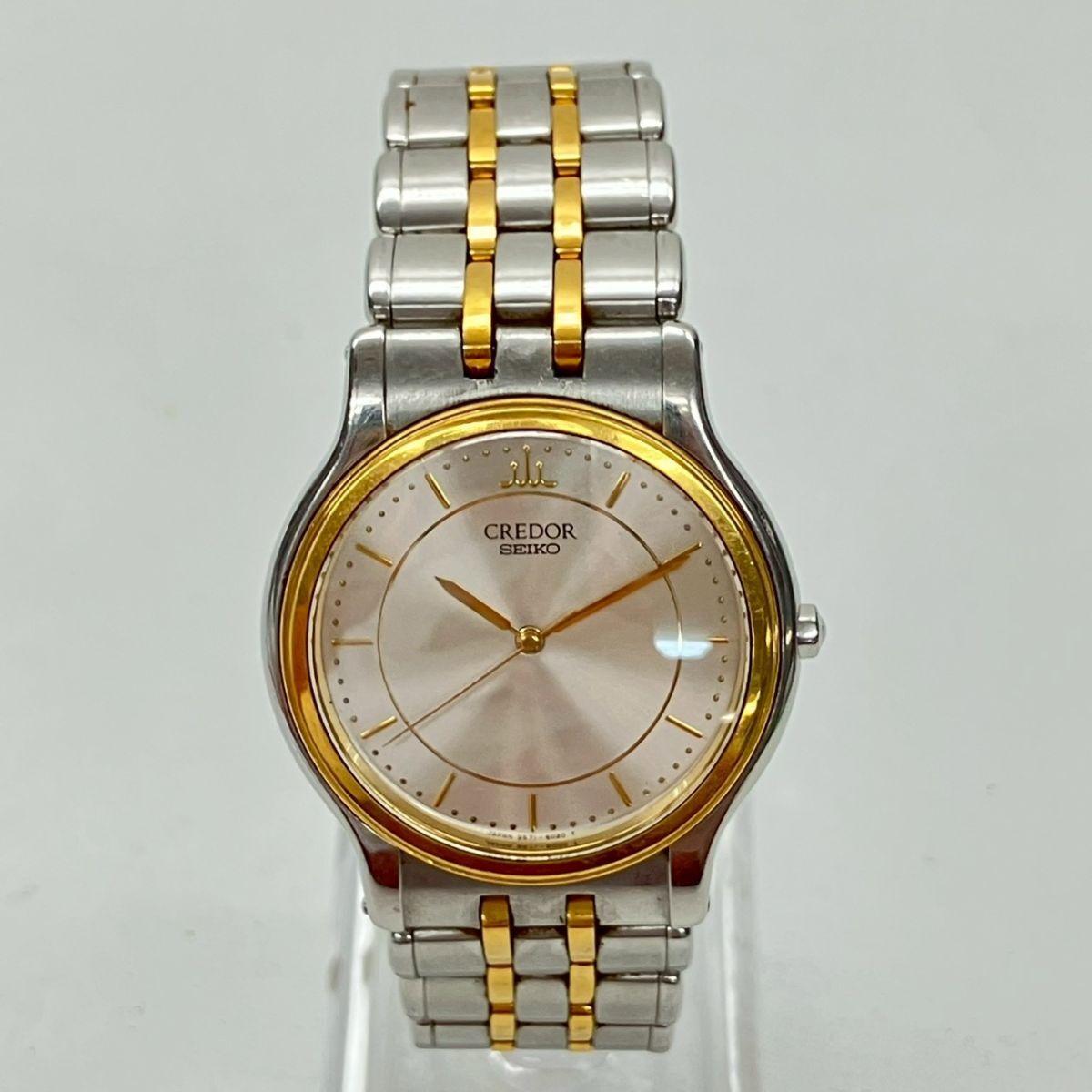 取り扱っている商品は未使用・未開封も含め、全て一度は人の手に渡った一点ものの中古・ジャンク扱いでの商品です。 当方素人ですので肉眼で確認できる簡易的な検品、採寸、および簡易梱包となります。 ※稼働の記載につきましては秒針等の確認のみとなり、全体の動作を保証するものではございません。 また、出品時の中古品の動作状況となりますので、予めご了承の上でご入札ください。 不動の表記につきましてはクォーツ式のムーブメントの場合、動作未確認の状態となります。 電池交換後、不具合があった場合でも返金、返品の対象とはなりませんので、予めご了承くださいますようお願い致します。 細かな日差、オーバーホール状況、社外パーツの使用に関しては保証しかねますので、ご理解いただけた上でのご入札をお願い致します。 上記を踏まえた上で中古品、ジャンク商品として出品させていただいておりますので、全てご理解いただけた上でのご入札をお願いいたします ------------------------------------------------------------------------- 【メーカー】 SEIKO 【モデル名】 CREDOR 【型番】 9571-6020 【シリアル】 3110248 【サイズ】 直径約3.3cm 腕回り約16.3cm 【付属品】 画像参照 【稼働状態】 稼働 【その他状態】 リューズ動作 時間:OK 日付:- 曜日:- ------------------------------------------------------------------------- 画像にあるものが全てです。 他詳細は画像にてご判断ください。 ※目立つ傷や汚れを中心に写真を撮っておりますが、画像に写りきっていない傷等がある場合もございます。予めご了承ください。 ※商品を多数出品している関係で、稀に商品説明や画像に誤りがある場合がございます。予めご了承ください。 こちらのページをご覧いただく際は、商品説明文と掲載している画像の全てを確認いただいた上でご入札ください。 | |||||||