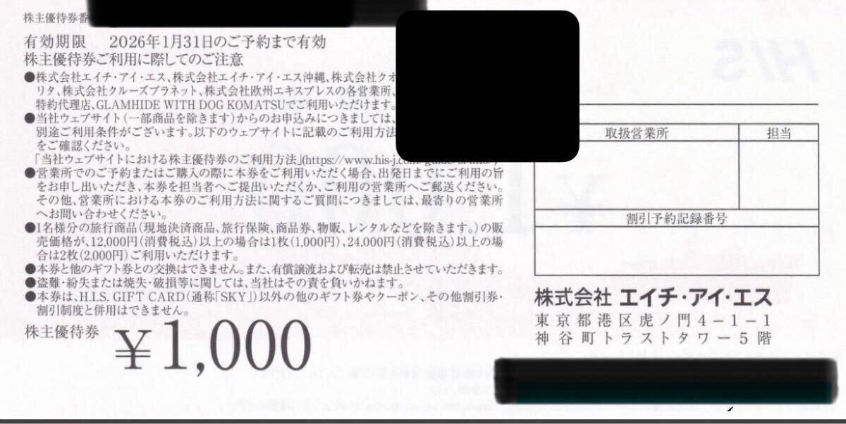 エイチアイエス 株主優待券 8000円分。| 出价者 | 信用 | 价格 | 时间 |