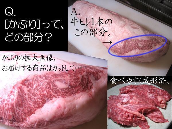 | ■ヒレは最も柔らかい牛肉の部位。 加えて素晴らしい霜降りと最高の旨みを持ち合わせた、 極上ヒレ肉のかぶりをお届け致します。 ■[かぶり]とはヒレ肉1本の頭の方についており、 ステーキとしても提供せず市場にもまず出回らない珍品中の珍品。 肉質は和牛ヒレ肉そのものの霜降とやわらかさで、 シャトーブリアンにも決して引けをとりません。 ★お召し上がりは[ステーキ][焼肉]で。 焼きすぎずレアで口に運ぶと、 ぎっしり詰まった和牛の旨みを心ゆくまでご堪能いただけます。 ■500gを真空パックし、冷凍便でお届け致します。 |