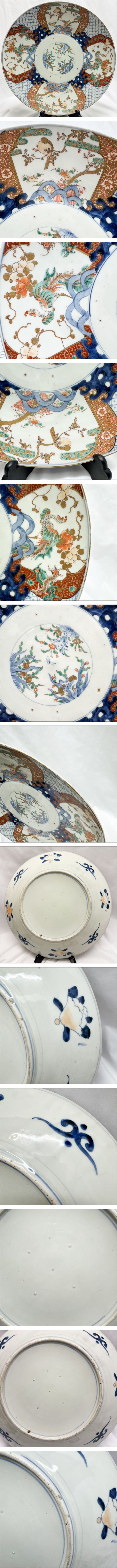 1円~坂本龍馬姉の蔵品 大皿46cm 古伊万里 色絵 鳥図 飾皿 江戸末期~9 | |||
