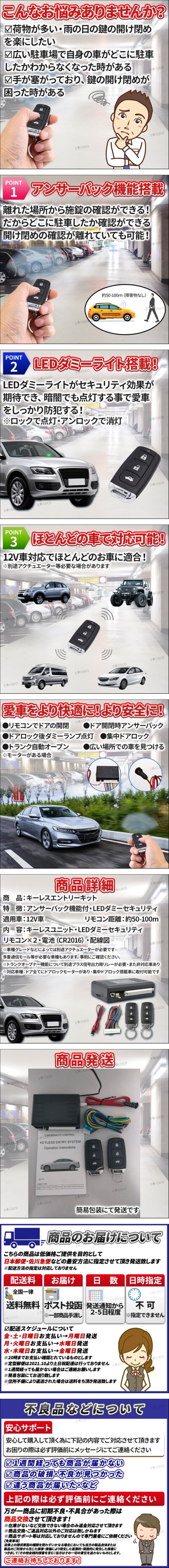 | キーレスエントリー 後付け キット アンサーバック 防犯 12V 汎用 集中ドアロック キーレス ダミーライト セキュリティ リモコン 社外 ② | ||