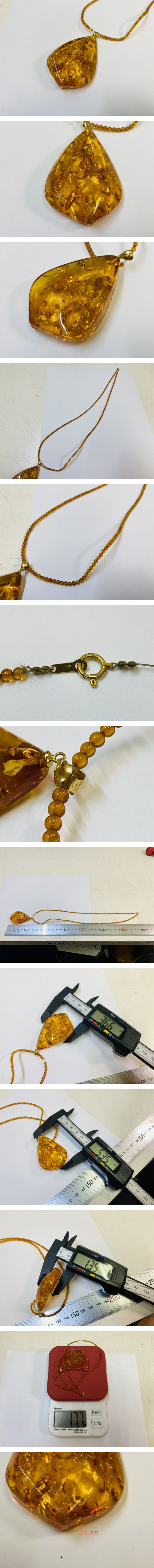琥珀 コハク ペンダント/ネックレス 留具 K18刻印 アクセサリー 総重量約17.7g 18金 18K | |||
