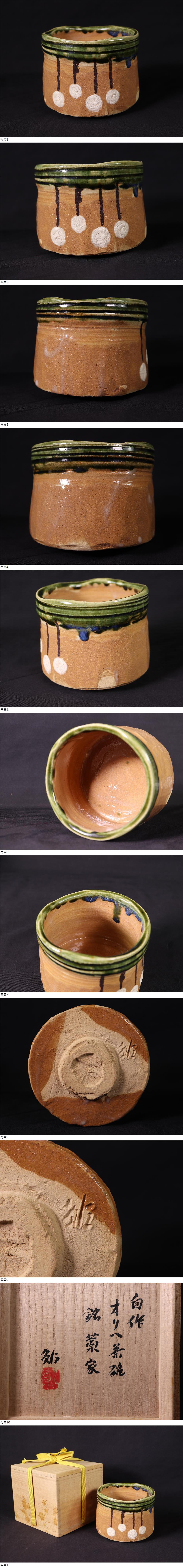 | 数江瓢鮎子 自作織部茶碗 銘「藁家」共箱 茶道具 |