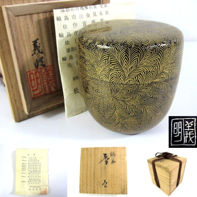 松井義明 作 輪島塗 棗 沈金 共箱【説明欄に詳細写真有り】の出品です。