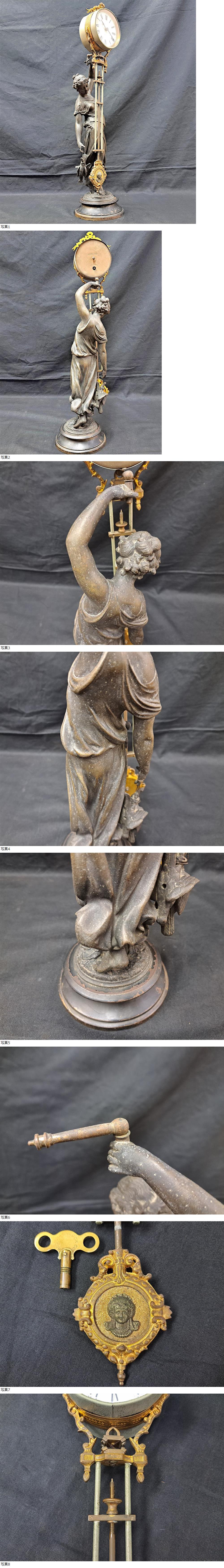 48時間以内に入金できない方、評価の悪い方、新規の方、連絡の遅い方、神経質な方、振り子機械式時計に不慣れな方の入札はご遠慮願います。 1900年~明治33年頃の米アンソニア(ANSONIA)総体振時計です。 20年以上前に地元の骨董店で購入し部屋に飾っておりました。時計と言うより置物と考えておりましたので使用した記憶がありませんが出品に前に軽くネジを巻き数時間程度の動作確認ですが調子よく動いておりました。後ろ中央の摘みを回すと時間の調整が可能です。動いてはおりますか20年以上未整備のアンティーク機械ですので動作や精度の保証は出来ません。オーバーホール前提で入札願います。 状態は100年以上前の大型時計になりますので画像のような傷みがありますが飾っていて恥ずかしくなるような大きなダメージはありません。時代を経た貫禄のある時計です。詳しくは良く画像をご覧ください。 動くことは確認しましたが当方が所有して(20年~)からはオーバーホール等はしておりませんので動作の保障や完璧な物をお求めの方・神経質な方や写真で判断できない方の入札はご遠慮下さい。 【サイズ】縦約60㎝です。その他購入時のままで詳しい事が分かりませんので画像と私の説明で判断できる方のみ入札願います。 古い時計の為ノークレームノーリターンでお願いします。 送料は佐川元払いのみ・・・・・・・・・・・・ 【北海道】2,000円 【北東北】1400円 (青森、岩手、秋田) 【南東北】1400円(山形、宮城、福島) 【関東】 1400円 (茨城、栃木、群馬、埼玉、千葉、東京、神奈川、山梨) 【信越】 1600円(新潟、長野) 【北陸】 1600円(富山、石川、福井) 【中部】 1600円 (静岡、愛知、岐阜、三重) 【近畿】 1800円(滋賀、京都、大阪、兵庫、奈良、和歌山) 【中国】 2000円 (鳥取、岡山、島根、広島、山口) 【四国】 2200円(香川、徳島、愛媛、高知) 【九州】 2200円(福岡、佐賀、長崎、熊本、大分、宮崎、鹿児島) 【離島、沖縄】ゆうパック着払いのみ| 出价者 | 信用 | 价格 | 时间 |