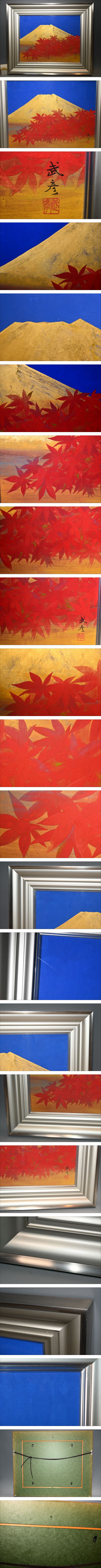 真作■谷中武彦■ 日本画 金富士に赤い紅葉 富士山 10号 額装 中国黒竜江省チチハル市生 水戸市 黄金色に輝く富士山 風景 吉田善彦に師事 | |||