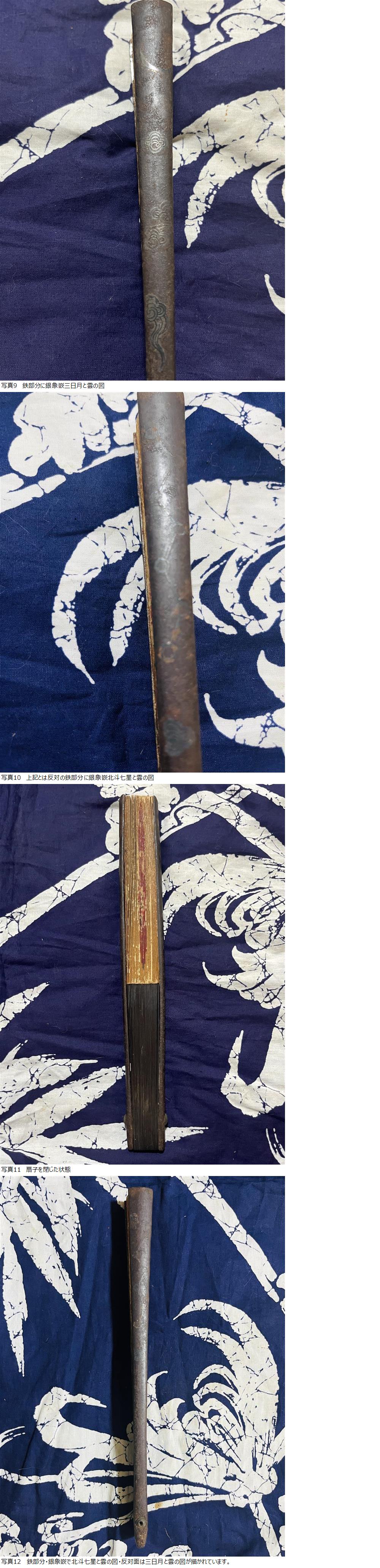 | 【名品銀象嵌入り日の丸高級鉄扇!旧家蔵出し品/定価10万円】銀象嵌北斗七星と雲の図/三日月と雲の図江戸時代幕末/時代物/芹沢鴨//売切1円~ |