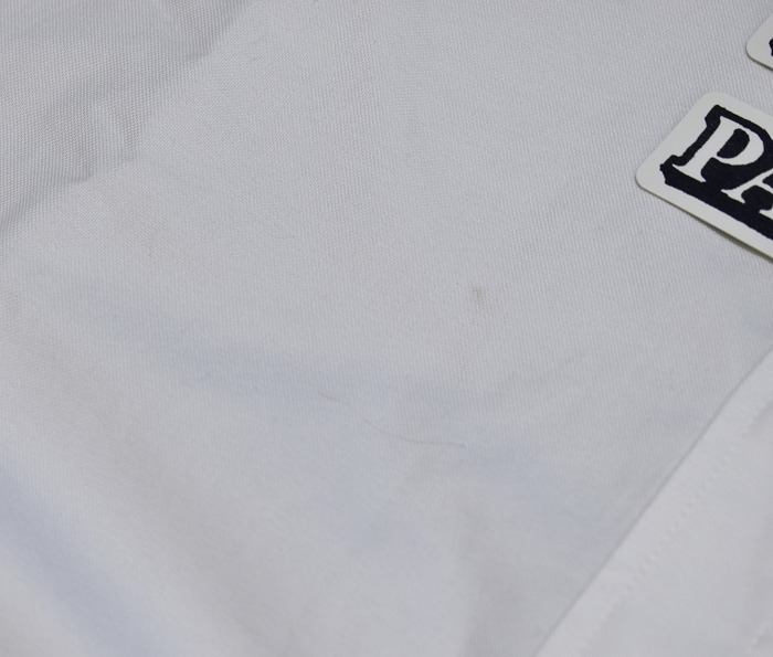 ・素材: コットン 100% ・カラー:ホワイト ・サイズ:XL 実寸 肩幅 約50cm・身幅 約62cm・着丈 約84cm・袖丈 約63.5cm (多少の誤差はお許しください) 永遠の定番ともいえる オックスフォード×ボタンダウン の シャツ です。 いつの時代・どの世代にも好まれ、季節を問わないこのシャツは 飾らず、肩の力を抜いて、シンプルに。 左胸には刺繍が施されたデイリーユースな一枚。 未使用品ですが、よく目をこらしてみると左ショルダー、右胸あたりに 言わないとわからない程度の小さなうす汚れがあります。 まったく目立ちませんがご理解いただける方のみでお願いいたします。 定価¥19800(税込) かなりお値打ちだと思います。この機会にぜひ!。 他にもいろいろ出品しています。 管理番号:212210MY-088901★ PD092504-500 |