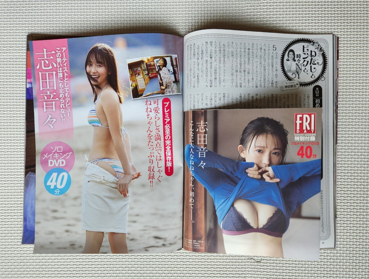 とじ込み付録の「志田音々DVD(9,10番目の画像ご参照)」は新品未開封です。雑誌本体も切り抜きや書き込みはなく、概ね状態良いです。他にも色々な商品を出品しておりますので、自己紹介欄とあわせてご覧いただけると幸いに存じます。