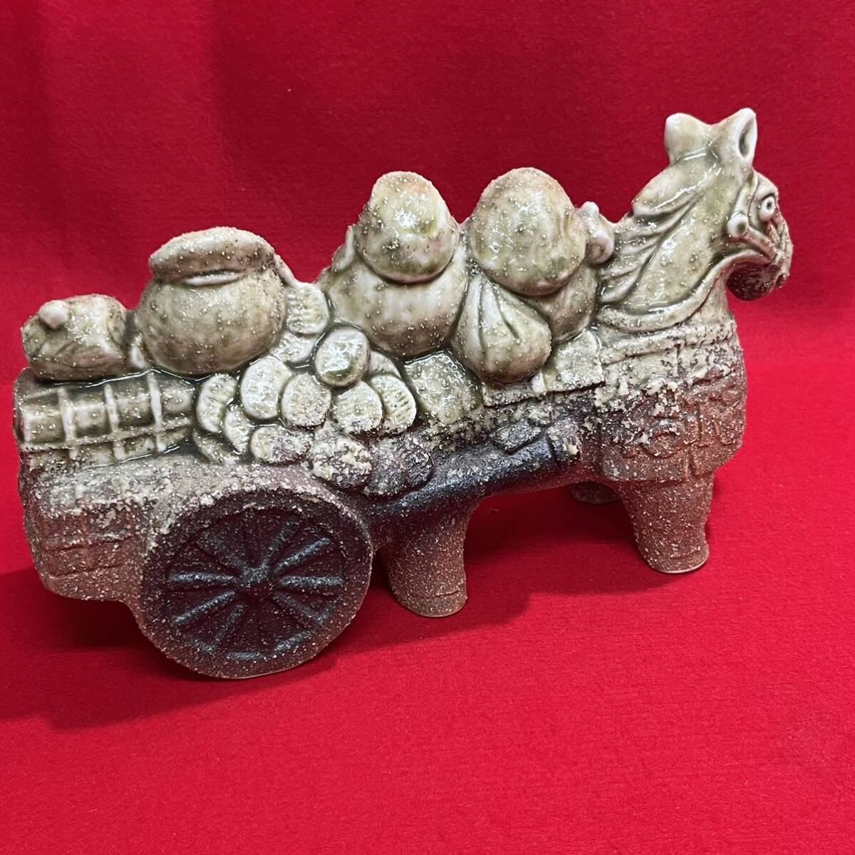 レトロ 恵比寿 大黒 馬乗り 置物 信楽 伊賀 開運 招福 縁起物 オブジェ インテリア (09056並