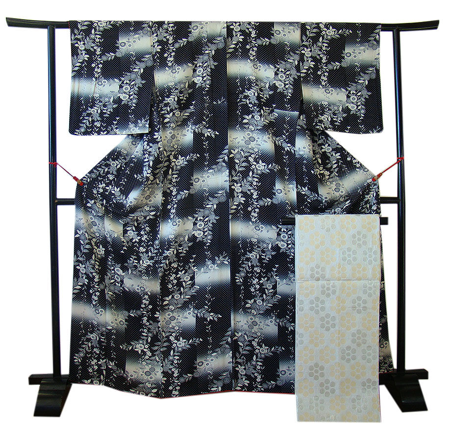 ※素敵な一越地に小紋と袋帯、帯〆、帯揚の4点セットです。 帯や小物等の組み合わせにより無数のコーディネートをお愉しみ頂けます。 お茶事や古典芸能、慶事の宴、観劇、街着、お式の付き添いや入卒式等々。 40代~70代迄幅広く着用出来ます。身長150cm~156cmの貴女に最適。 |