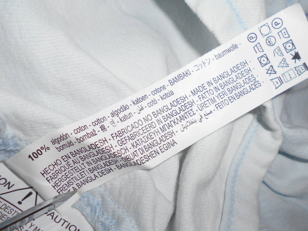 ◆サイズ表記 L ◆カラー ホワイトに近いライトブルー系 ◆素材 コットン100% ◆素人寸法ですが、身幅51cm 肩幅56cm 袖丈4cm レングス(股下から裾)5cm 着86cmです ◆若干の誤差は、お許しください ◆当社実寸測定方法はこちらでご確認下さい ◆画像は実際の色とデジカメ、モニターの性能上多少異なる場合があります ◆フロント中央付近に汚れがあります。その他、特に気になるシミ、ダメージ等はありませんが、used品の為クレーム、返金はご遠慮ください |