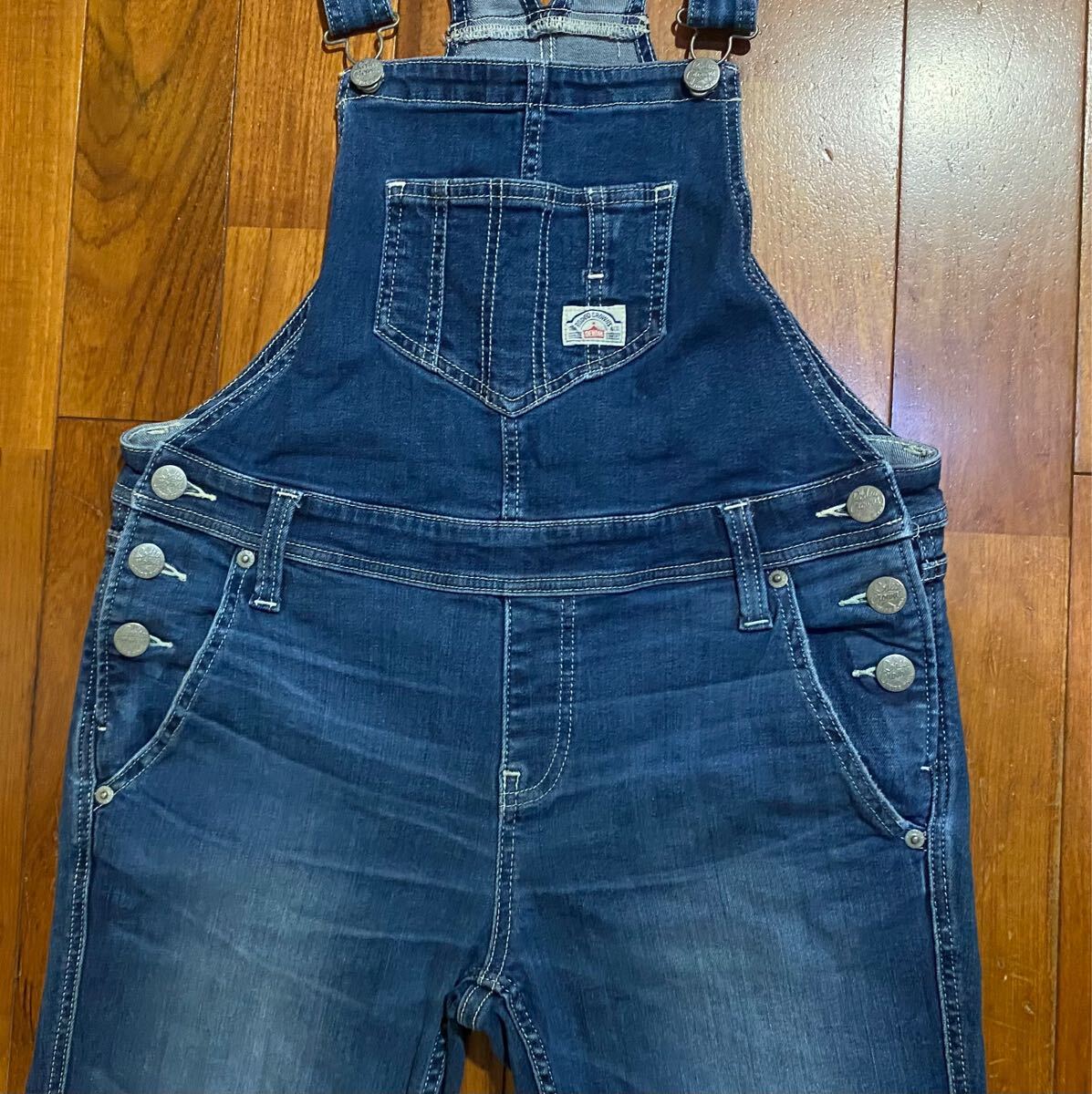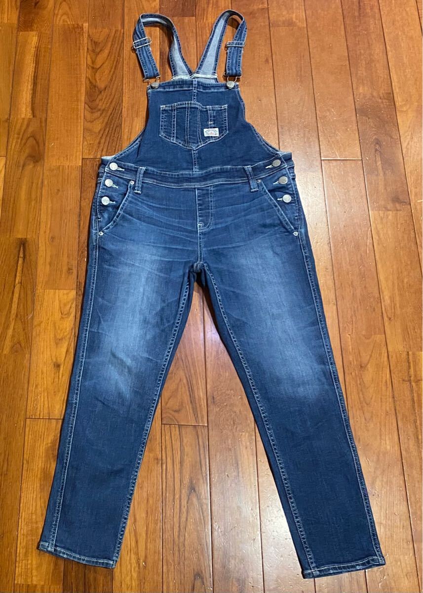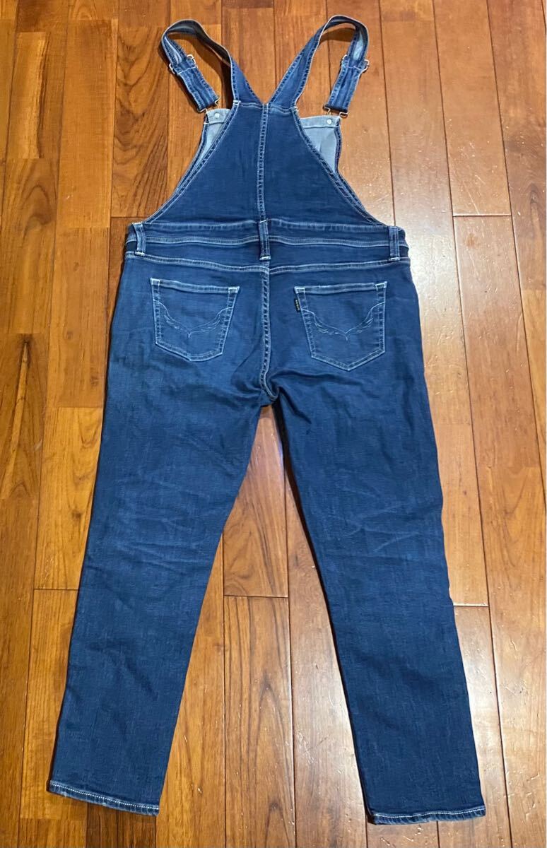 ロデオクラウンズのストレッチ サロペットデニム(ジーンズ)、NO.420BSR13-0480です。色はインディゴブルーです。USEDですが状態は良いです(10段階中8程度)。生地はストレッチ入りでコットン94%、ポリエステル4%、ポリウレタン2%です。正規品です((株)バロックジャパンリミテッド、カンボジア製)。サイズはMでウエストは約86cm、ヒップ約102cm、股上約24cm、股下約64cm、股下15cmのふともも部分約47cm、裾まわり約30cm、重量約630gです。発送はゆうパケットポストになります。