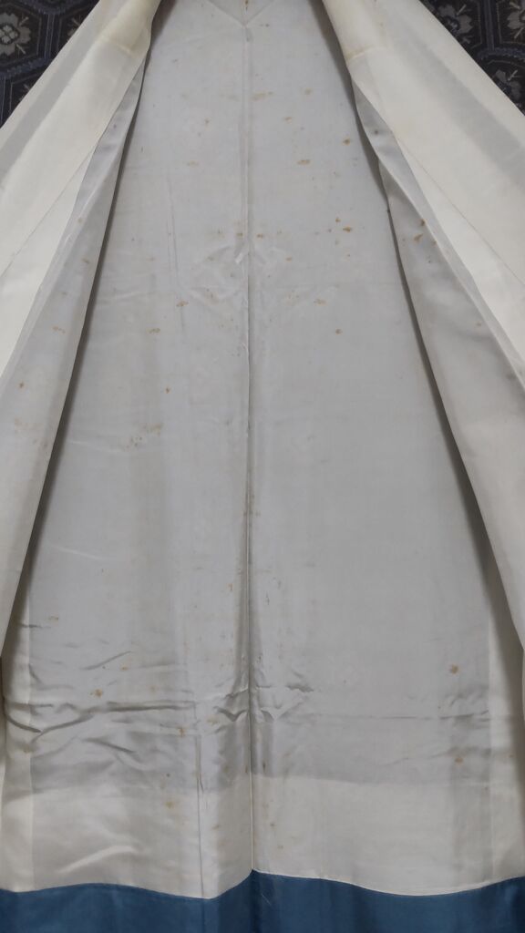 未使用品となりますが長期保管のため、シミがある品となります。内側・白地部分に複数シミが見られます。表地にも近い距離から注意して見た際にはわかる程度のシミがあります。基本的にはシミ・汚れ等のある状態のものとなりますので、ご了承の上お取引いただくようお願い致します。細かい部分を気にされる方や綺麗な状態のものをお求めの場合はお取引をご遠慮いただくようお願いいたします。 | |