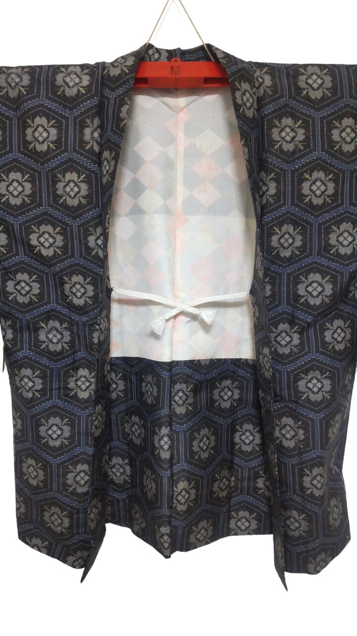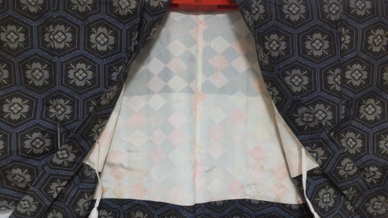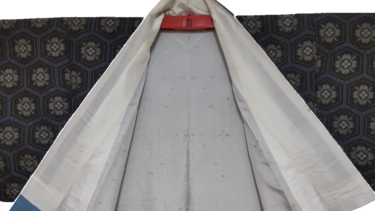 大島紬のアンサンブルです。羽織と着物のセットとなります。 ◆サイズ(約/㎝) 着物: 袖幅32 袖丈50.5 前幅24.5 衽15 襟下75 身丈159 肩幅31 後幅 30.5 裄63 羽織: 袖幅33 袖丈50 前幅17 身丈79 肩幅30.5 後幅30.5 裄63 ![]() ![]() ![]() ![]() ![]() 下画像がシミのある箇所を写したものとなります。 ![]() | |