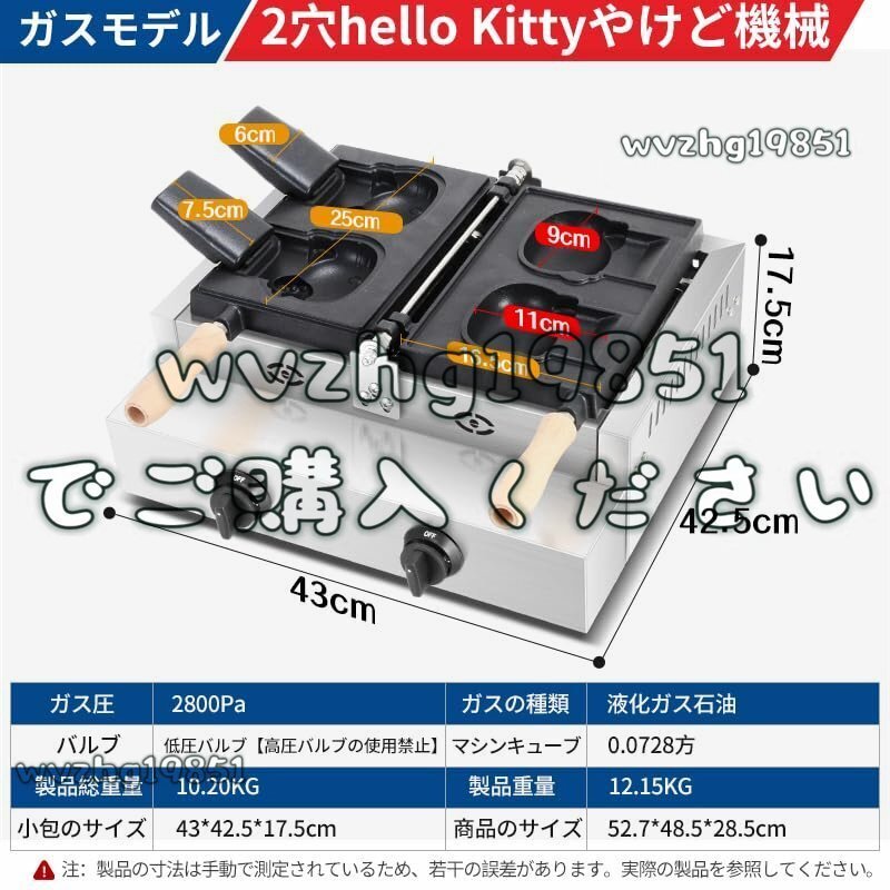鯛焼きメーカー業務用電気たい焼き機、業務用電気加熱キティ たいやきタイプ 焙煎機均一加熱三種焙煎機 ガスモデル 2枚