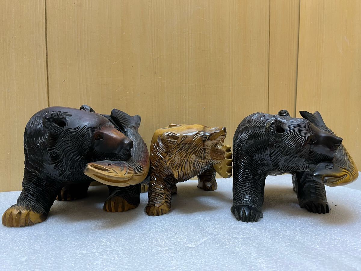 RE4553 木彫りの熊 在銘 白伊/清峰/他 3点まとめ 北海道土産民芸品木製昭和レトロ 現状品 0514 [浏览原始页面]