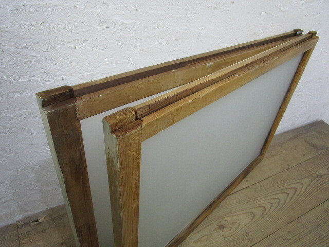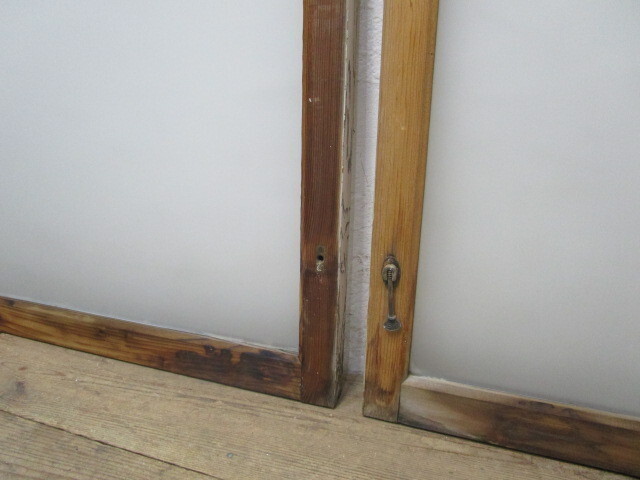 商品情報 | ■商品詳細■ レトロな古い木枠ガラス戸、2枚セットです。 シャビーシックな味わいのある品です。 ガラスは、曇りガラスを使用しています。 一般のご家庭はもちろん、レトロな店舗什器にもお勧めです。 経年の傷や欠け、染みや汚れ、 塗料の剥がれ等がありますが、使用には問題ありません。 古い塗料のため、移動中に多少剥がれる場合がありますので、予めご了承ください。 ガラスにヒビや割れはありません。 古い物とご理解いただければ幸いです。 ◆別カテゴリーにて同じデザインの品(S596~S599)を出品していますので まとめてご希望の場合は、ストア内検索で上記の管理番号を検索して頂ければと思います。 売買済みの場合はご了承下さい。 ご不明な点などありましたら、質問欄にてお願いします。 ■サイズ■ 全体(最大値) (H 62,5cm×W 86cm×D 3cm)×2枚 竪框 5cm 多少の誤差はご了承下さい。 |