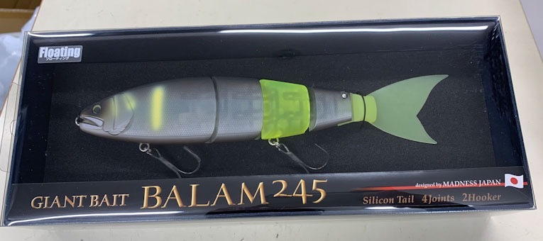 | マドネスジャパン バラム245。245mm、3.7oz。 今までのジャイアントベイトに無かった超高速リトリーブを多連結ボディで可能にし、高速巻きでも安定したスイム姿勢をキープすることで逃げ 惑うベイトを極限まで演出、ストラクチャーに潜む早い動きにしか反応 しないデカバスを仕留めます。 |