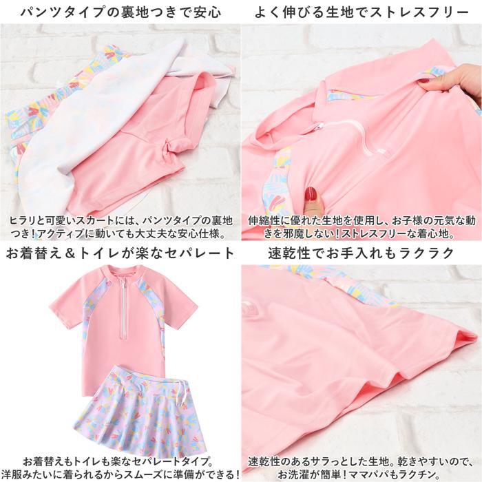 | 商品説明 | ・・ラッシュガード要らずの上下セット☆キッズ水着が登場。 ・【ラッシュガード要らずの仕様】 ・半袖とスカートパンツのセット。露出を控えた作りで、日焼け対策しながら水遊びができる! ・【パンツタイプの裏地つきで安心】 ・ヒラリと可愛いスカートには、パンツタイプの裏地つき!アクティブに動いても大丈夫な安心仕様。 ・【よく伸びる生地でストレスフリー】 ・伸縮性に優れた生地を使用し、お子様の元気な動きを邪魔しない!ストレスフリーな着心地。 ・【お着替え&トイレが楽なセパレート】 ・お着替えもトイレも楽なセパレートタイプ。洋服みたいに着られるからスムーズに準備ができる! ・【速乾性でお手入れもラクラク】 ・速乾性のあるサラっとした生地。乾きやすいので、お洗濯が簡単!ママパパもラクチン。 ・【姉妹やお友達とおそろいコーデ☆】 ・サイズバリエーションが豊富なので、姉妹やお友達とおそろいコーデが楽しめる♪ |