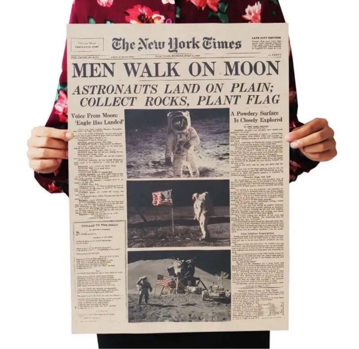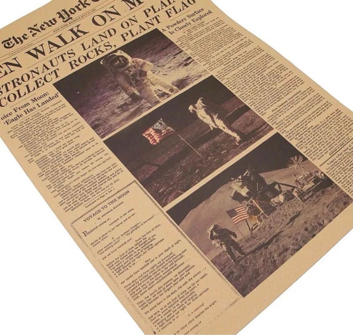 アポロ11号の人類初の月面着陸成功の新聞記事をモチーフにしたレトロでアンティークなアートポスターです。| 出价者 | 信用 | 价格 | 时间 |