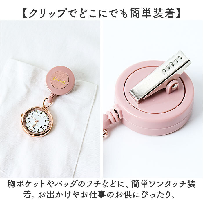 | 商品説明 | ・・【リール&クリップつきで便利☆】 ・安心の日本製ムーブメントで長持ち◎「リール付きナースウォッチ コレット」が登場。 ・【サッと伸びるリールが便利!】 ・ポケットやバッグに着けたまま、見やすい手元までサッと伸ばせる便利なリールつきタイプ! ・【クリップでどこにでも簡単装着】 ・胸ポケットやバッグのフチなどに、簡単ワンタッチ装着。お出かけやお仕事のお供にぴったり。 ・【時計がつけられないシーンに◎】 ・お仕事や、お子さまの試験など、腕時計がつけられないときに大活躍するアイテム。 ・【パルスメーター目盛つきがポイント】 ・脈拍測定で役に立つ、パルスメーターの表記つき!看護師さんなど医療従事者に方にオススメ。 ・【暗い場所でも見やすい◎】 ・暗い部屋でも見やすい、蓄光針を採用。充実の機能面が嬉しいポイント。 ・【安心の日本製ムーブメント】 ・安心の日本メーカーで作られ、世界中に愛されている、日本製クオーツを採用。高い品質が魅力 ・【こっくりカラーが大人っぽい♪】 ・大人の女性にぴったりなこっくりカラー。シンプルなので幅広いシーンで使える! |