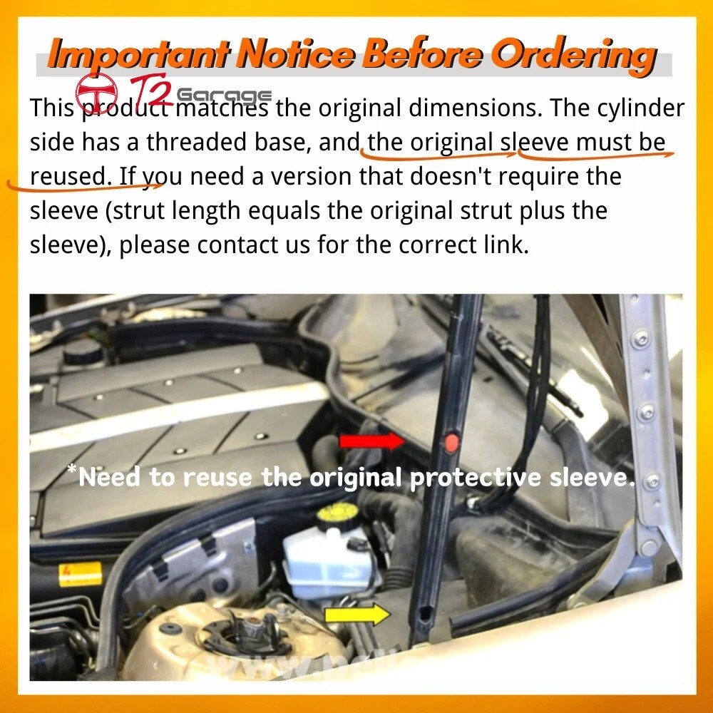 メルセデス・ベンツ Cクラス(W203)、CL55 AMG、CLK(2000-2007年式)のフロントボンネットをスムーズに開閉できる、高品質なガススプリング2本セットです。