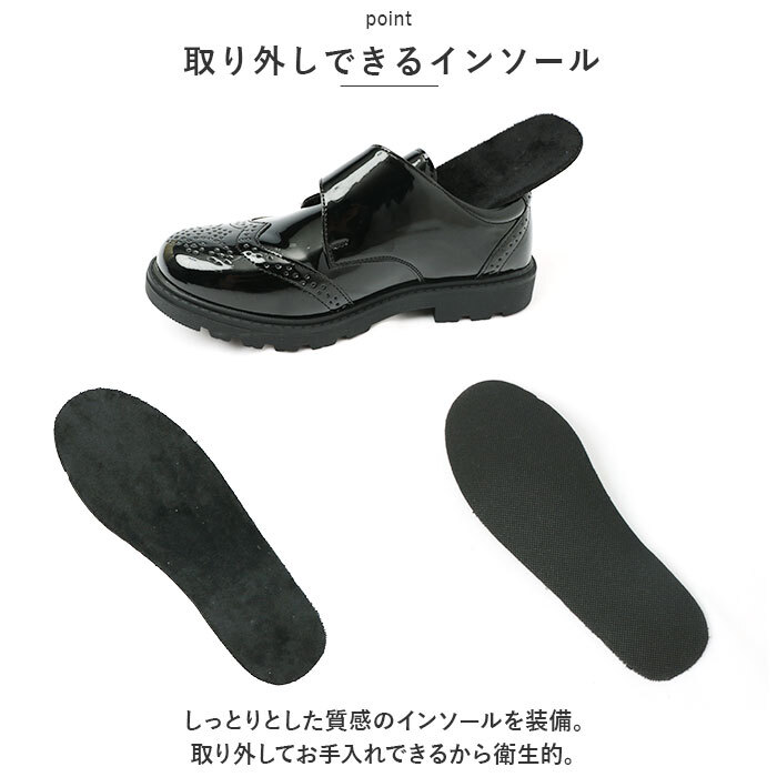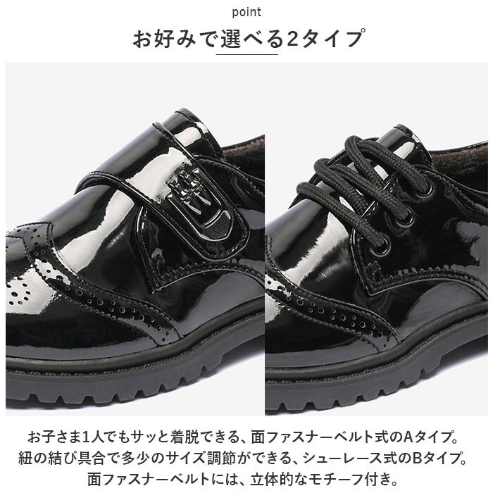| 商品説明 | ・・足元もかっこよく☆大人顔負けのスタイリングがキマる、男の子用フォーマルシューズが登場。 ・【スタンダードなデザイン】 ・滑らかでツヤ感のある素材に、ウィングチップがアクセント。フォーマルスタイルに素敵にマッチ。 ・【お好みで選べる2タイプ】 ・お子さま1人でもサッと着脱できる、面ファスナーベルト式のAタイプ。紐の結び具合で多少のサイズ調節ができる、シューレース式のBタイプ。面ファスナーベルトには、立体的なモチーフ付き。 ・【取り外しできるインソール】 ・しっとりとした質感のインソールを装備。取り外してお手入れできるから衛生的。 ・【歩きやすさが向上】 ・程よい屈曲性があり、つま先にかけてやや上を向いた形状。つまづきにくく、蹴り上げやすい! ・【安定感のあるソール】 ・前後の差を抑えつつ、かかと部分は地面からの衝撃を吸収する幅広仕様。底面に凹凸を施しているから滑りにくく、濡れた路面でも安心。 ・【お揃いで履けるサイズ展開】 ・成長に合わせて選べる10サイズ展開で、兄弟お揃いも☆どんなスタイルにも馴染むブラックカラー。 |