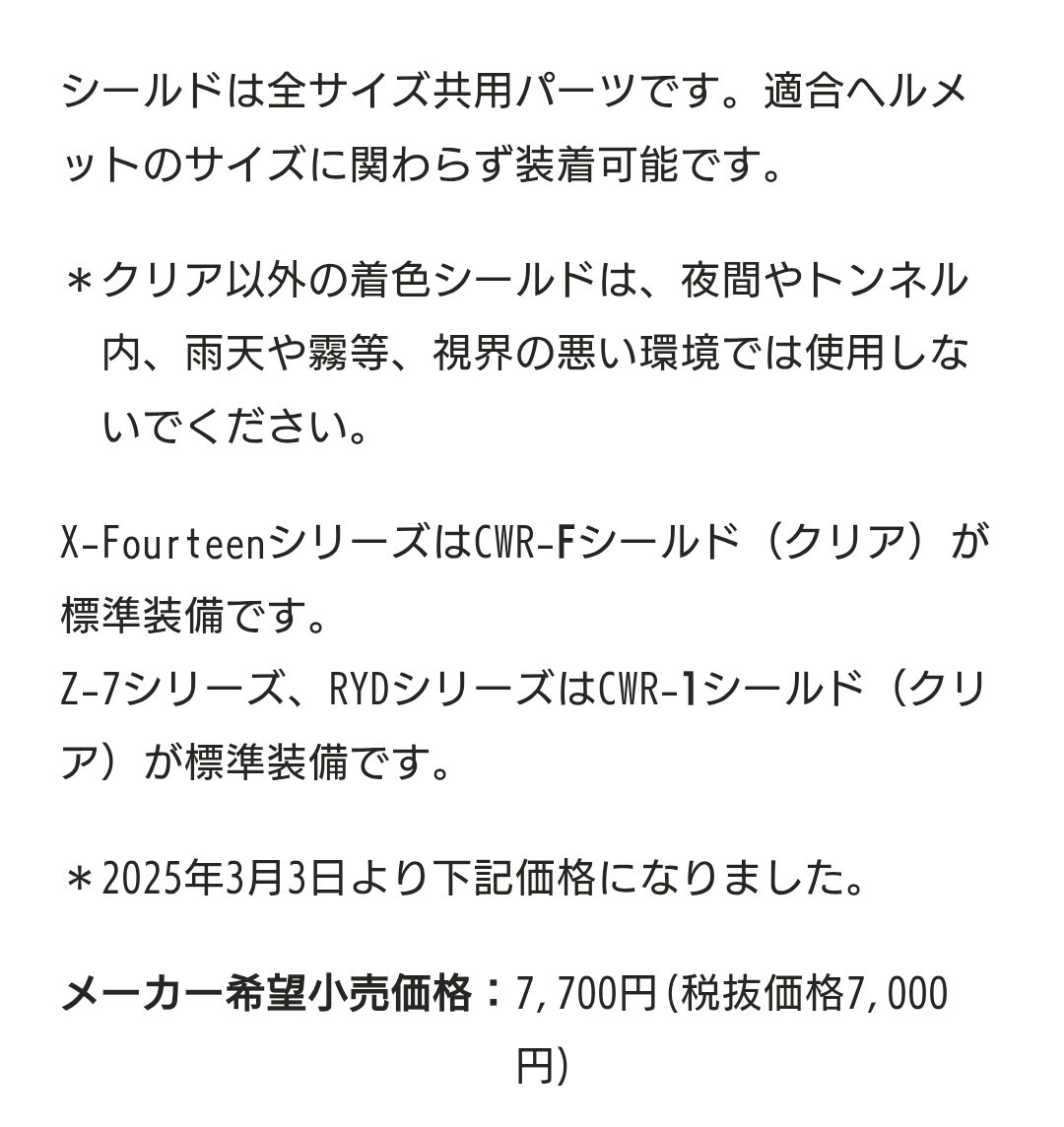 ショウエイのCWR-F ピンロックシールドです、カラーは「クリア」になります、X-Fourteenより取り外しました、未走行ですので保護フィルムも剥がしてなく美品です、未走行ですがヘルメットに装着されていましたので中古扱いでお願いします。| 出价者 | 信用 | 价格 | 时间 |