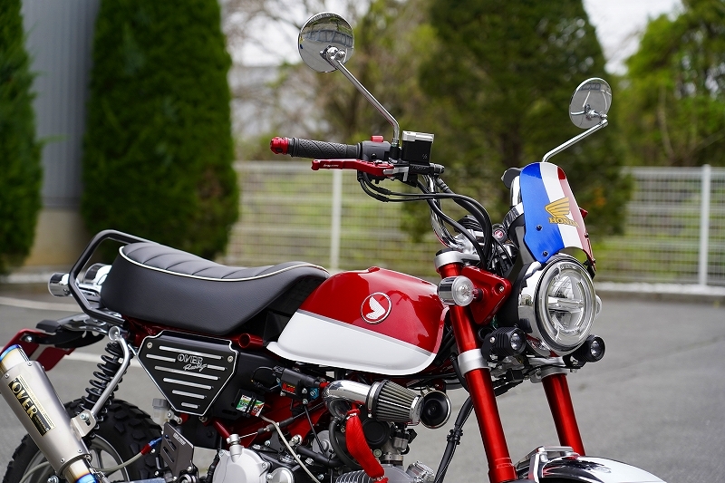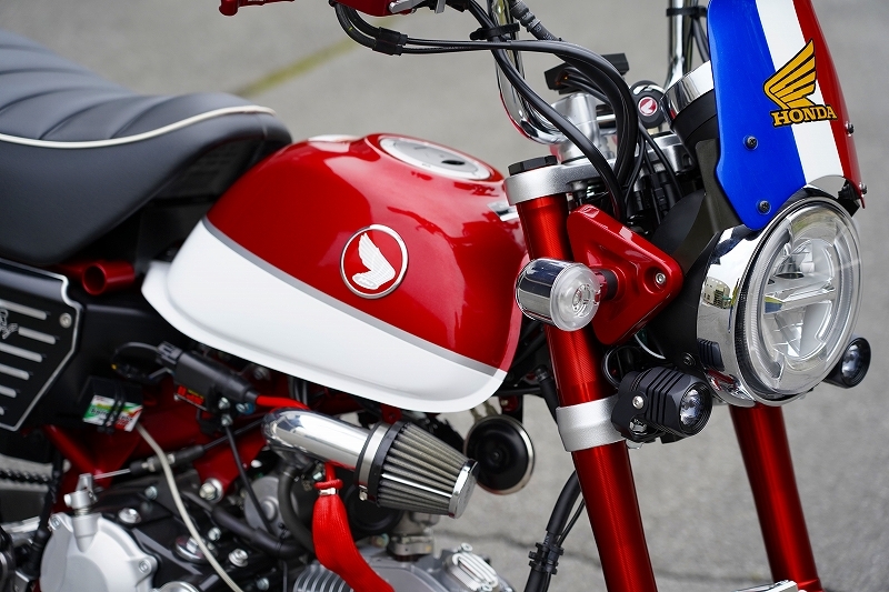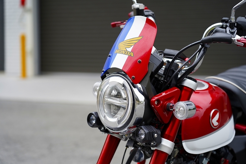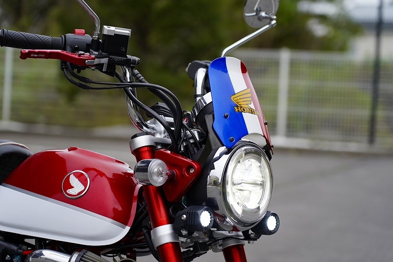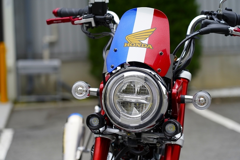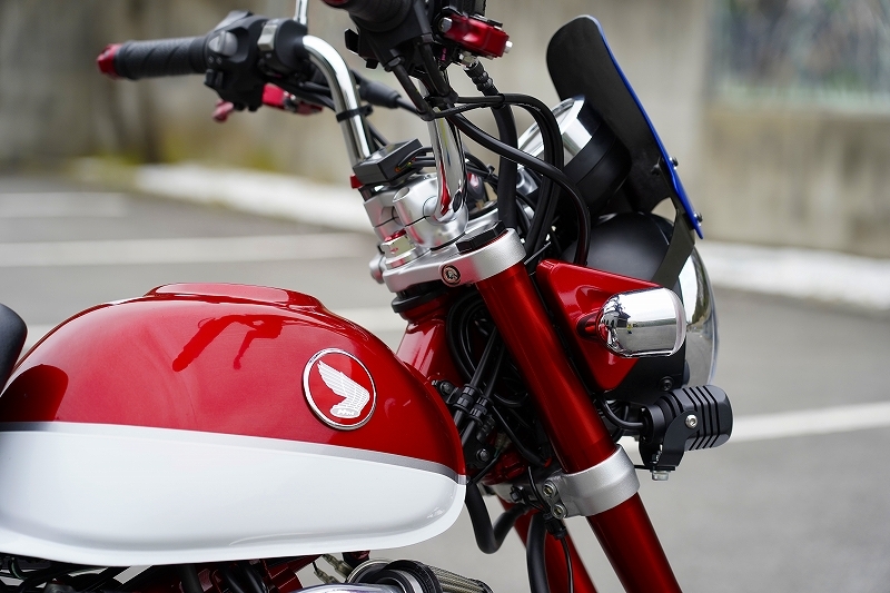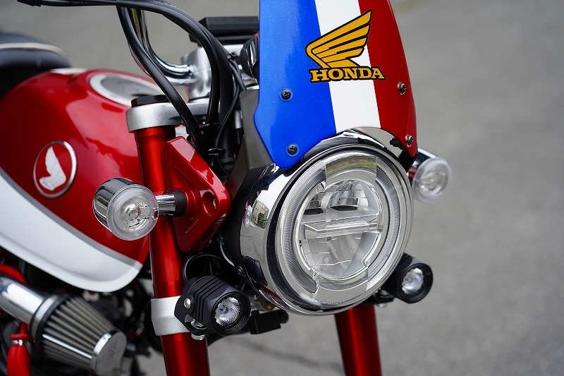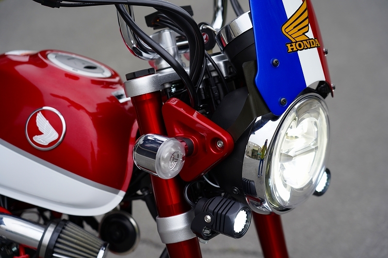 当ランプキットを使用する場合、HONDA立体フロントフォークエンブレムとの同時装着ができません。ダウンフェンダーキット等に交換し、HONDA立体フロントフォークエンブレムがステーと干渉しないようスペーサー等で調整することで同時装着が可能ですが、同時装着に関する取付方法のサポートは行っていません。