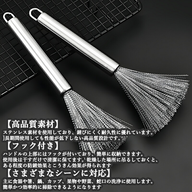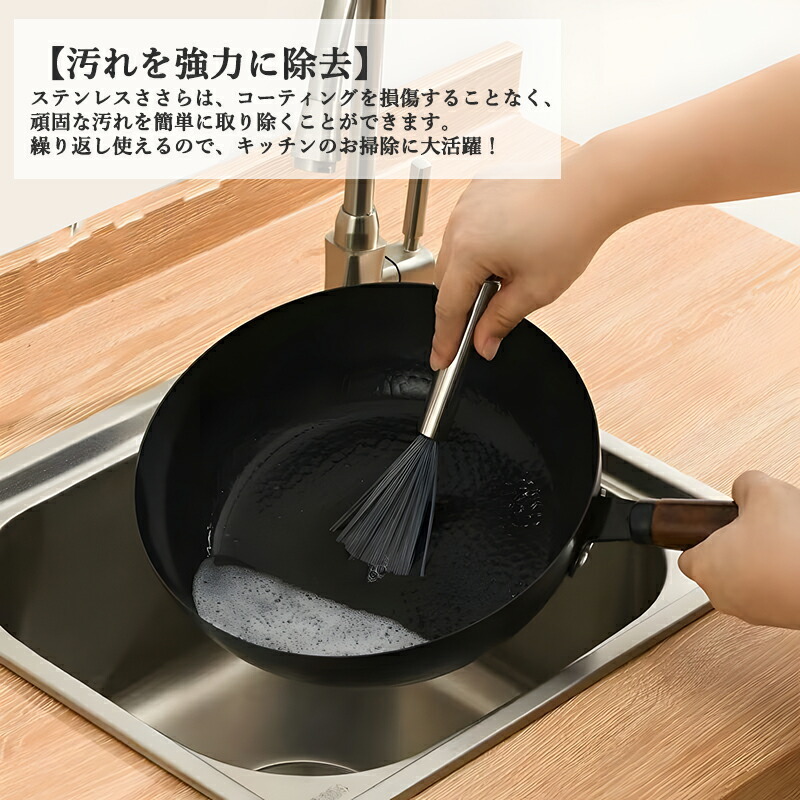 【汚れを強力に除去】ステンレスささらは、コーティングを損傷することなく、頑固な汚れを簡単に取り除くことができます。 繰り返し使えるので、キッチンのお掃除に大活躍!