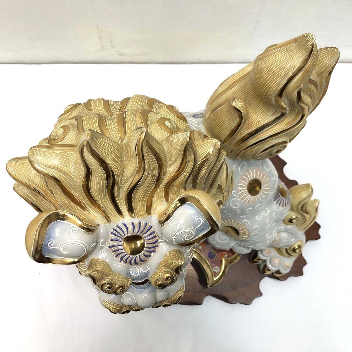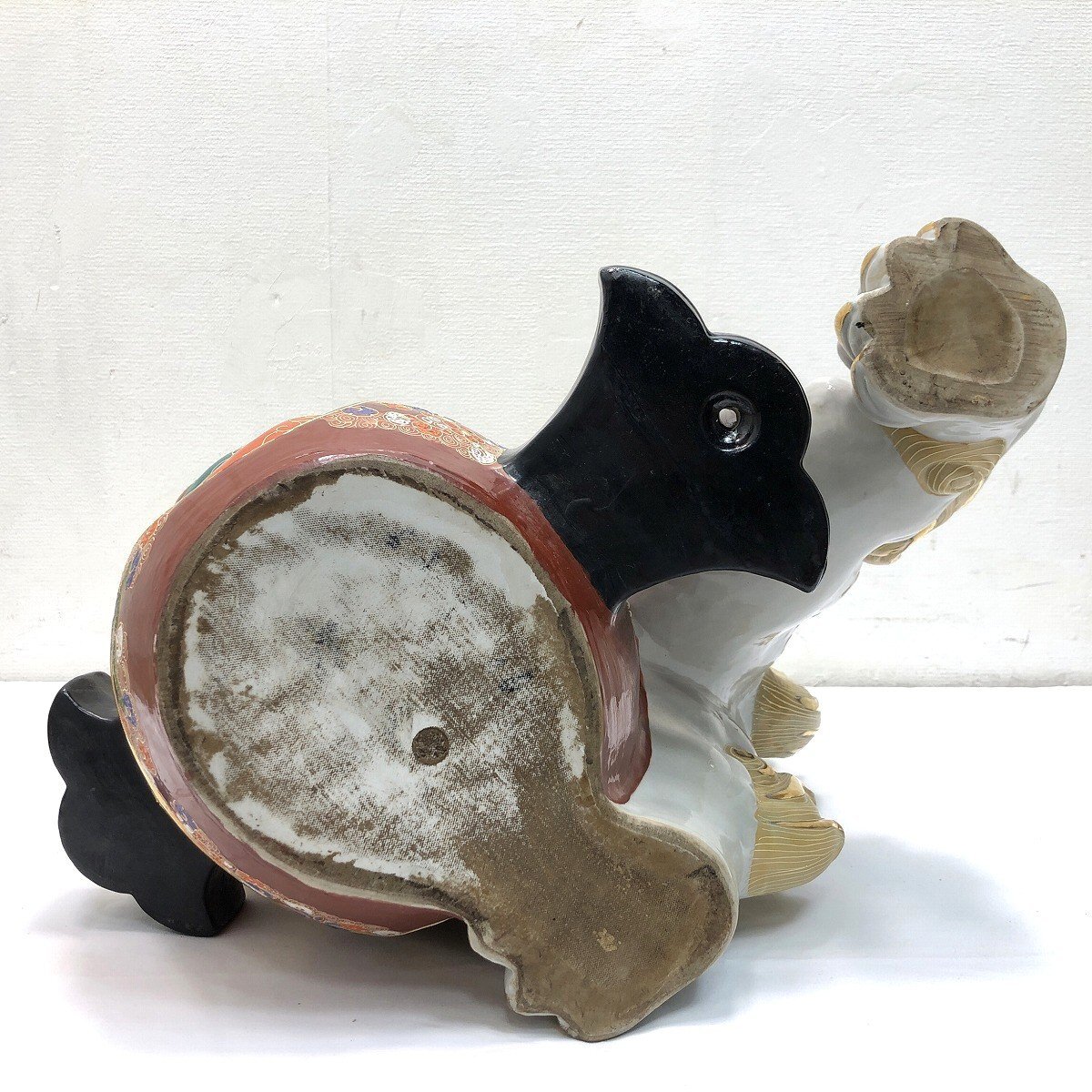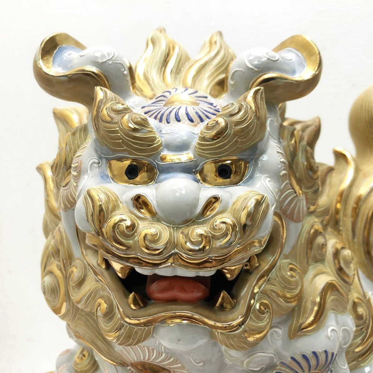 こちらは九谷焼 小槌獅子 縁起置物 魔除け 開運 白獅子 陶磁器です。 中古品です。 九谷焼特有の豪華な上絵付けが美しい小槌獅子の置物です。 獅子は古くから災いを退ける力があるとされ、打ち出の小槌は富を生み出す力を持つ縁起物です。 この二つが組み合わさることで、邪気を追い払い、富や幸運をもたらすとされています。 玄関や床の間に置くことで、邪気を払い良い気を取り込むと言われています。 この機会にぜひいかがでしょうか。 【コンディションについて】 多少の小傷があります。 詳細につきましては下記画像も併せてご参照ください。 ![]() 再良市場の他のお品物はこちらから!