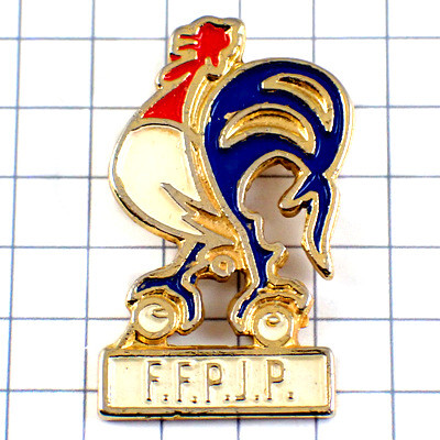 | "ピンバッジ・ニワトリ雄鶏ペタンクの球トリコロール青白赤"の商品説明 | |