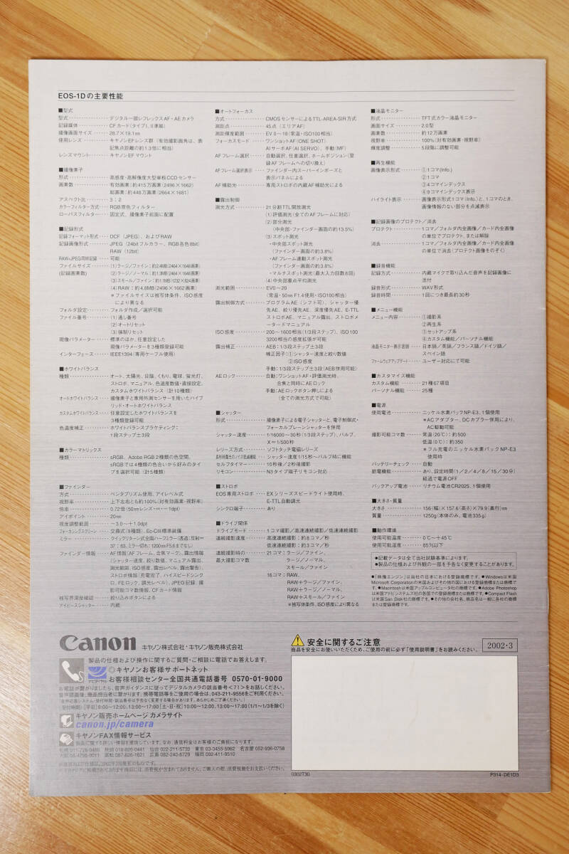 待望のプロ用デジタル一眼レフ【EOS-1D】のカタログです。| 出价者 | 信用 | 价格 | 时间 |
