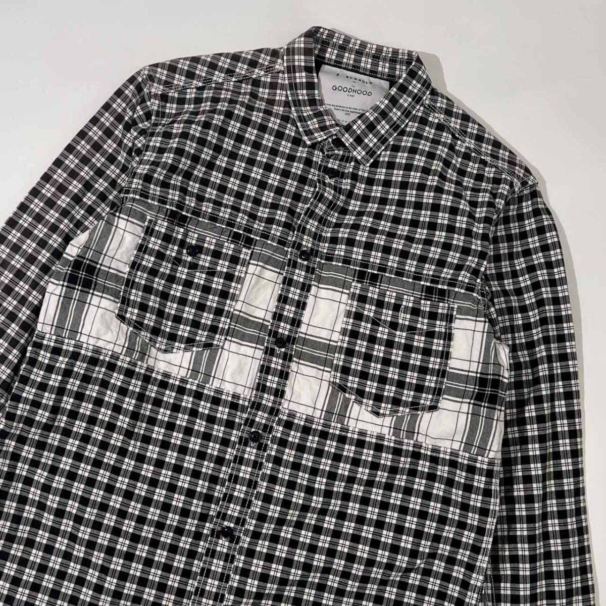 商品名R.NEWBOLD GOODHOOD アールニューボールド コラボ チェック 長袖 シャツ ワークシャツ L/ブラック×ホワイト メンズ 5周年記念