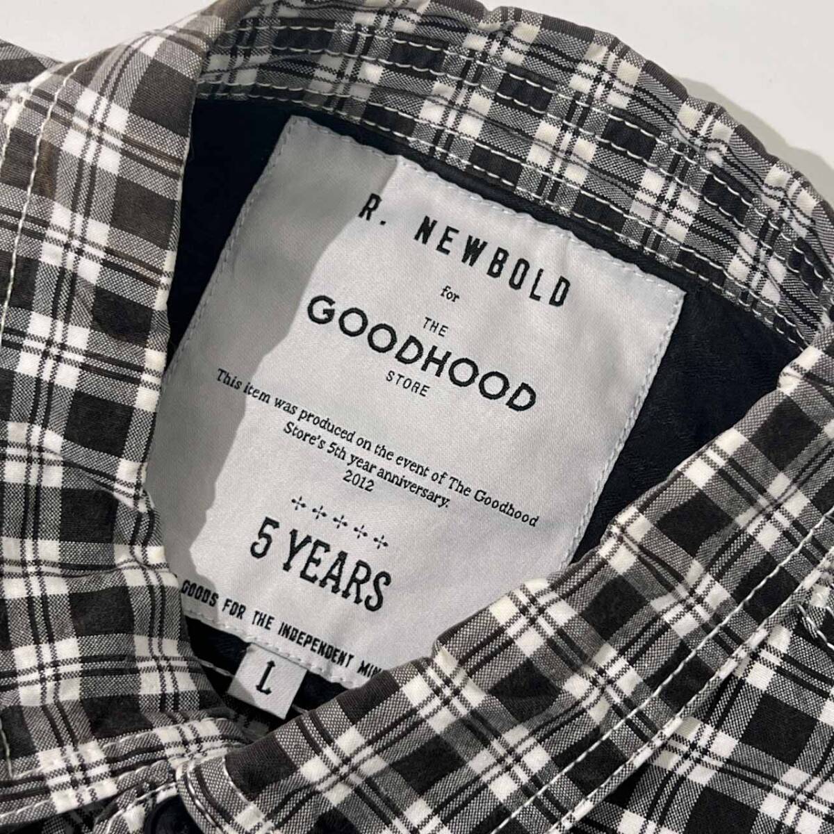 R.NEWBOLD GOODHOOD アールニューボールド コラボ チェック 長袖 シャツ ワークシャツ L/ブラック×ホワイト メンズ 5周年記念