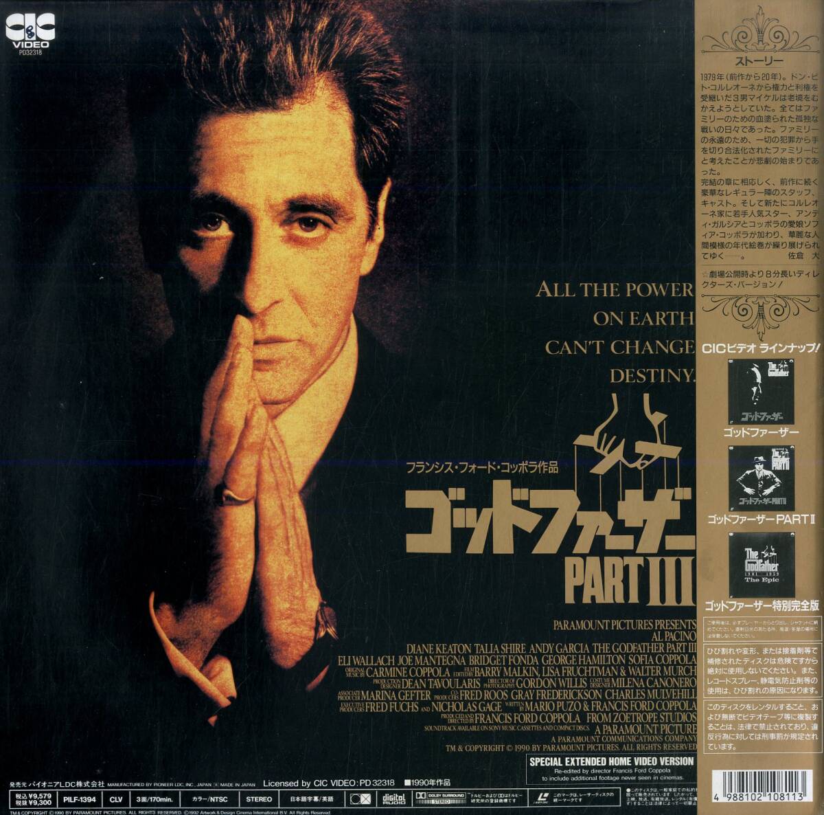 B00170988/LD2枚組/アル・パチーノ「ゴッドファーザーPart III (1990)」 [浏览原始页面]