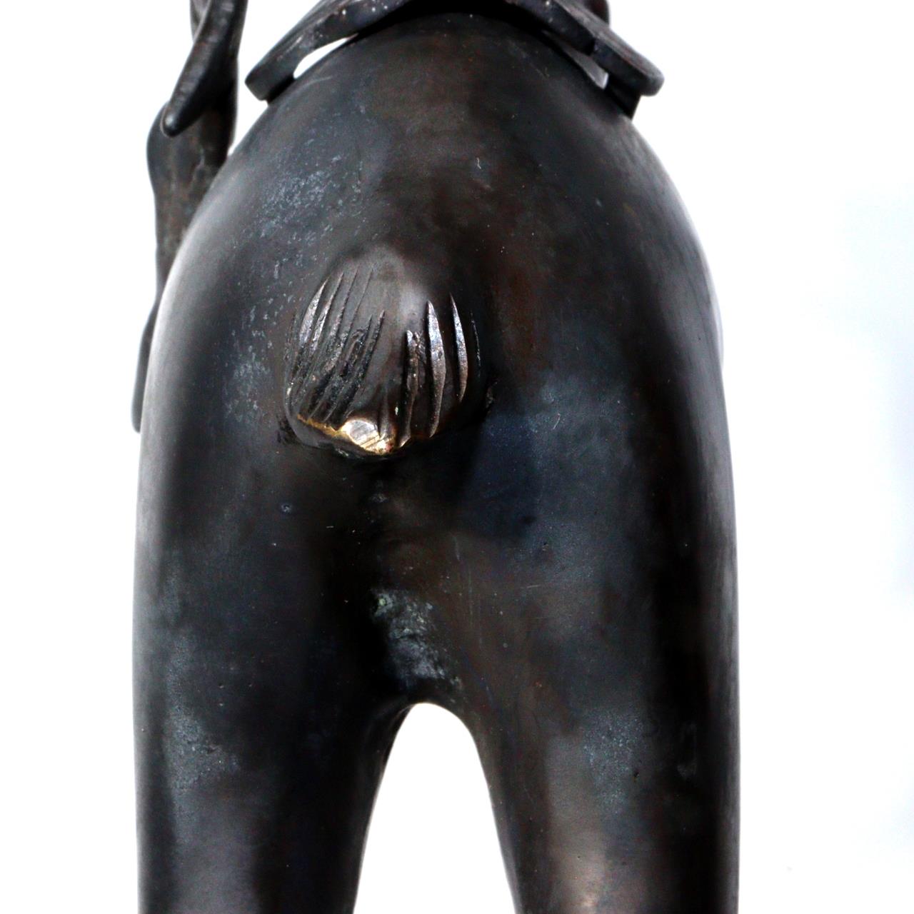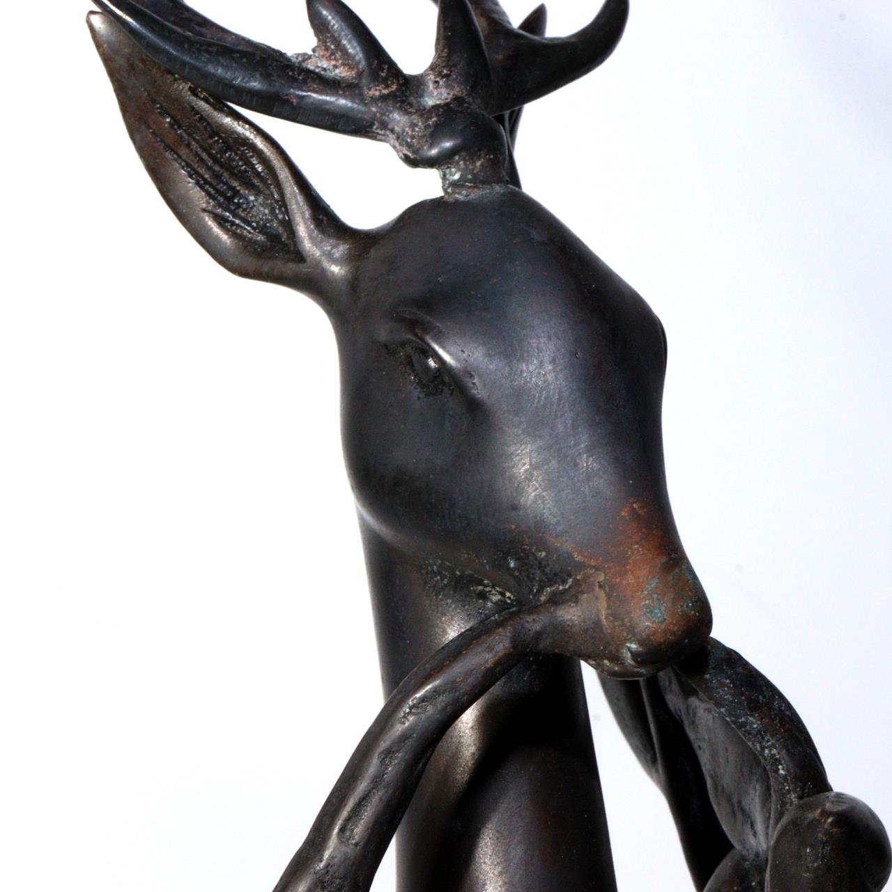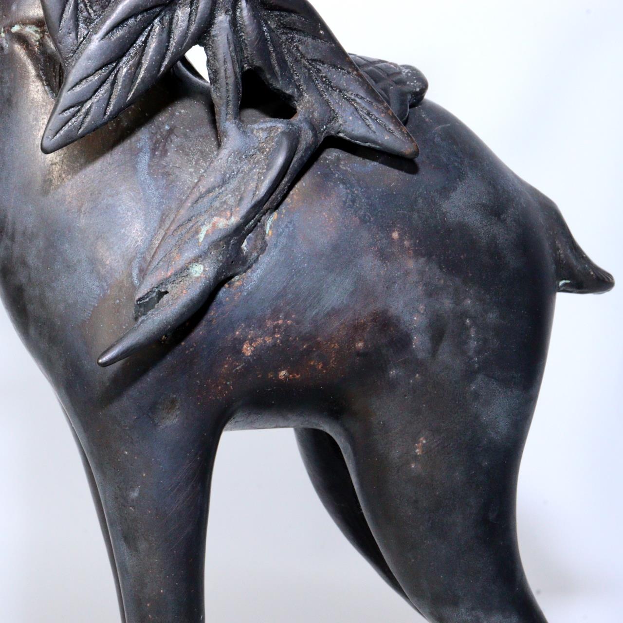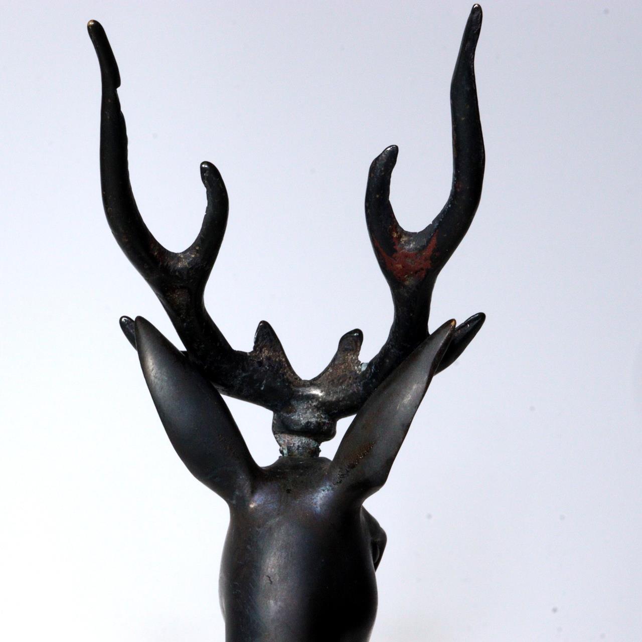 ◆ 商品説明本品は精緻な細工が施された鹿形の銅製香炉です。鹿は古来より長寿や生命力を象徴する吉祥の動物とされ、優美な姿態により格調高い趣を漂わせています。 角と背部は取り外しが可能です。 【サイズ】 高さ:約33cm 幅:約12cm 奥行:約7.5cm 重量:約1130g 共箱寸法:37.5 × 14.3 × 14.5cm 総重量:約1750g 【状態】 経年による擦れ・小傷・汚れがございます。 当方は骨董品を中心に取り扱っており、安心してお取引いただけるよう丁寧な対応・梱包を心がけております。 ◆ 商品について