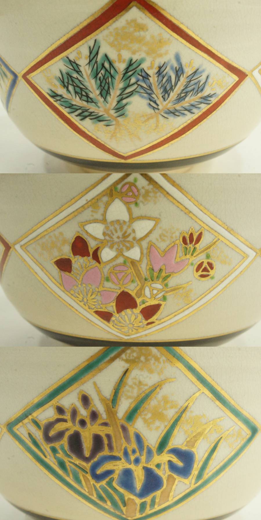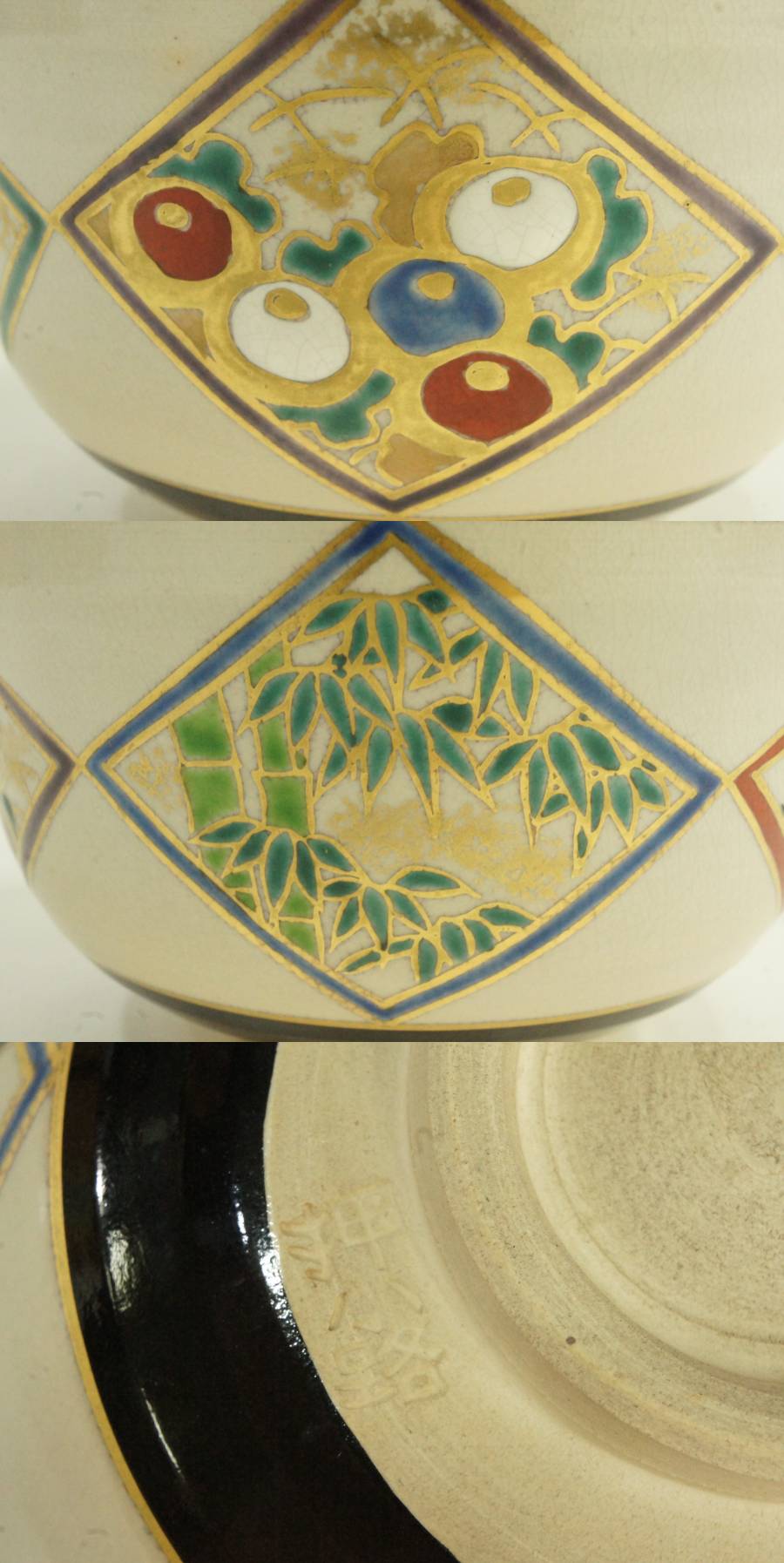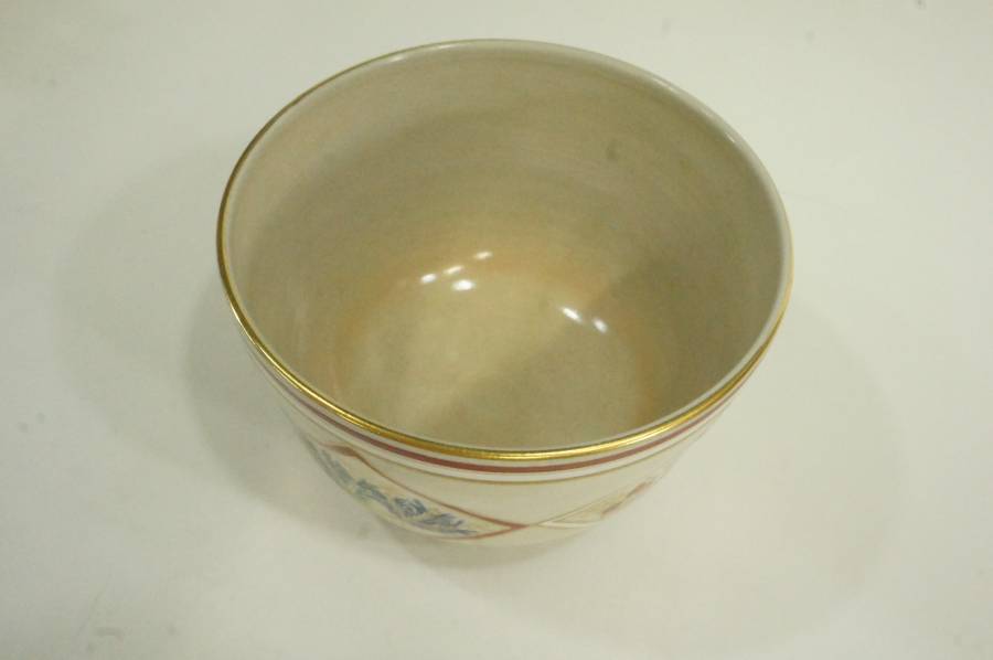 ●京焼 押小路窯 庄左エ門 色絵花菱文茶碗 金彩 共箱 状態良好 茶道具