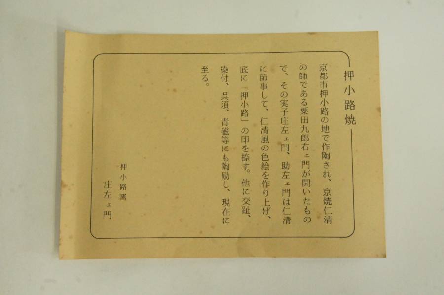 押小路窯(おしこうじがま)は、江戸時代初期に京都で開窯した窯元で、