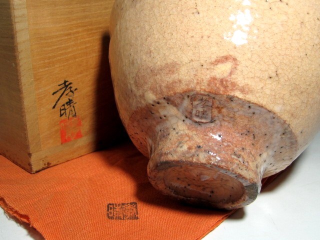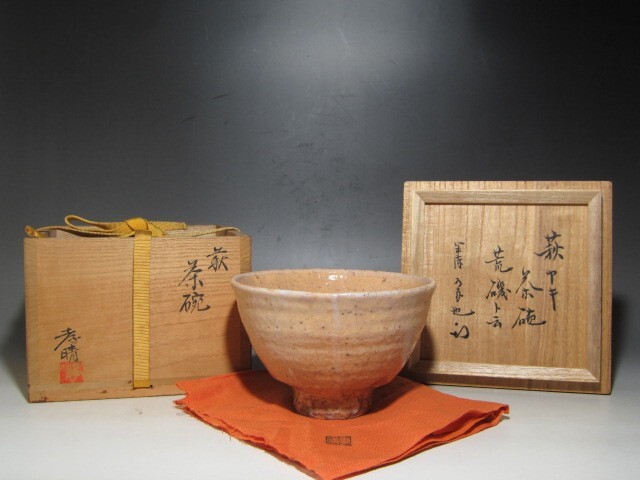 大野孝晴作の萩茶碗「荒磯」です。 趣のある素晴らしい作品です。 箱蓋裏に久田流十二代尋牛斎花押があります。 サイズ 直径14.3cm/高さ9cm(多少の誤差はお許しください) 状態 一見して疵やヒビ・直しは見られません。 骨董品という事をご勘案頂き、時代経過のスレや、小さな傷がある場合があるかもしれませんのでご承知置きください。 | |||
