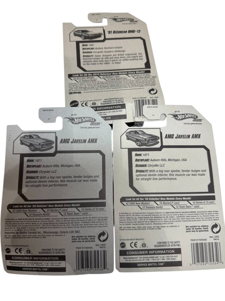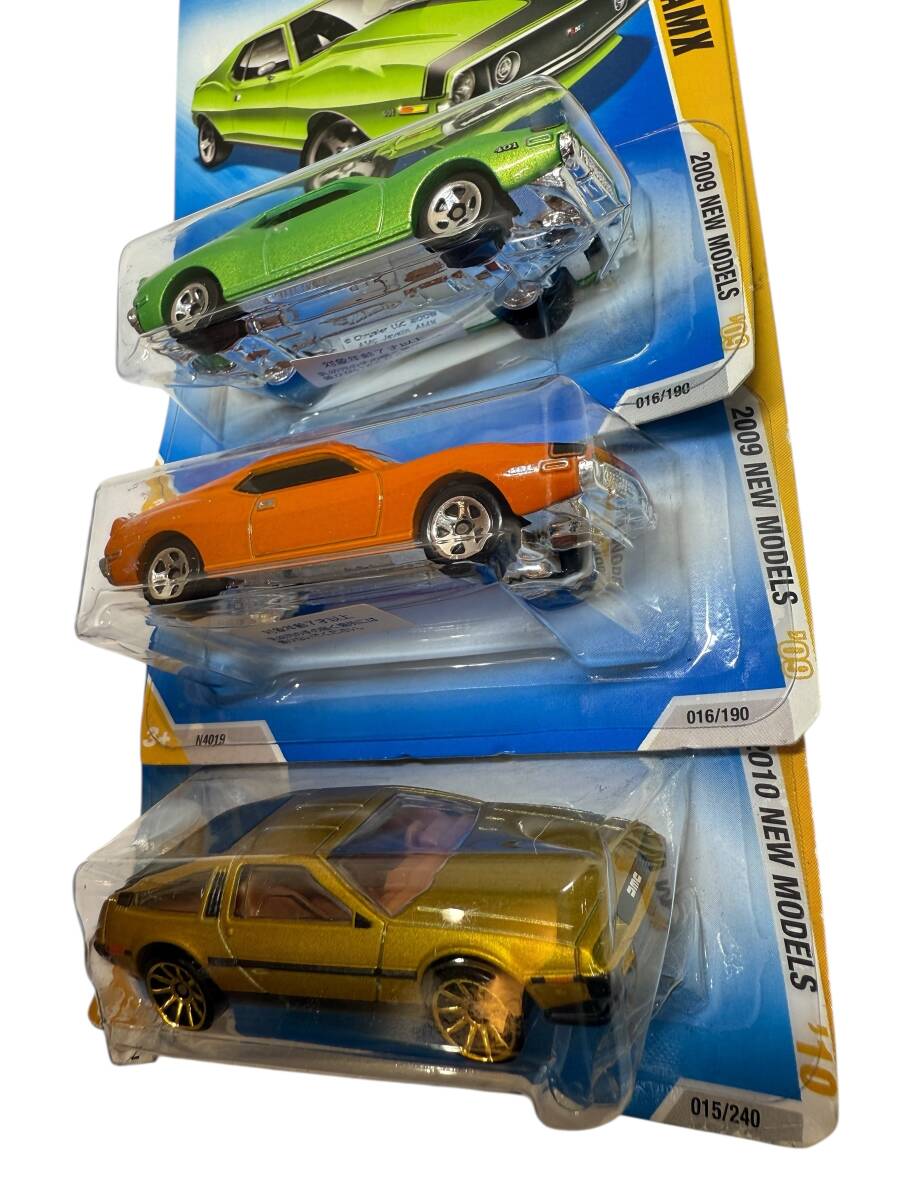 | ●S7-10-399 ホットウィール『2009 NEW MODELS AMG JAVELIN AMX』2台 『2010 NEW MODELS ‘81 DELOREAN DMC-12』1台 計3台セット 未開封 | |||