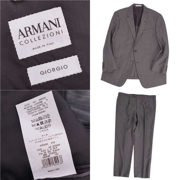 | 美品 アルマーニ コレッツォーニ ARMANI COLLEZIONI セットアップ スーツ シングル ストライプ ウール シルク 56 グレー |