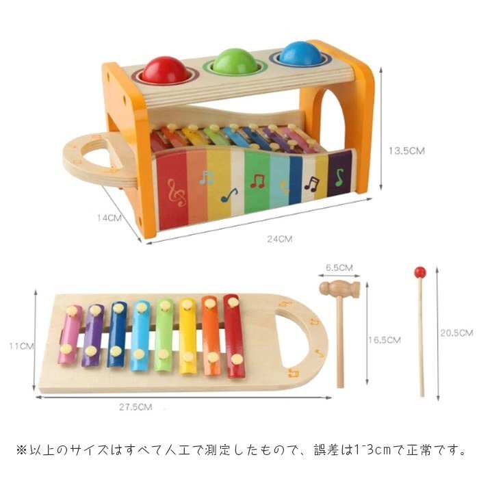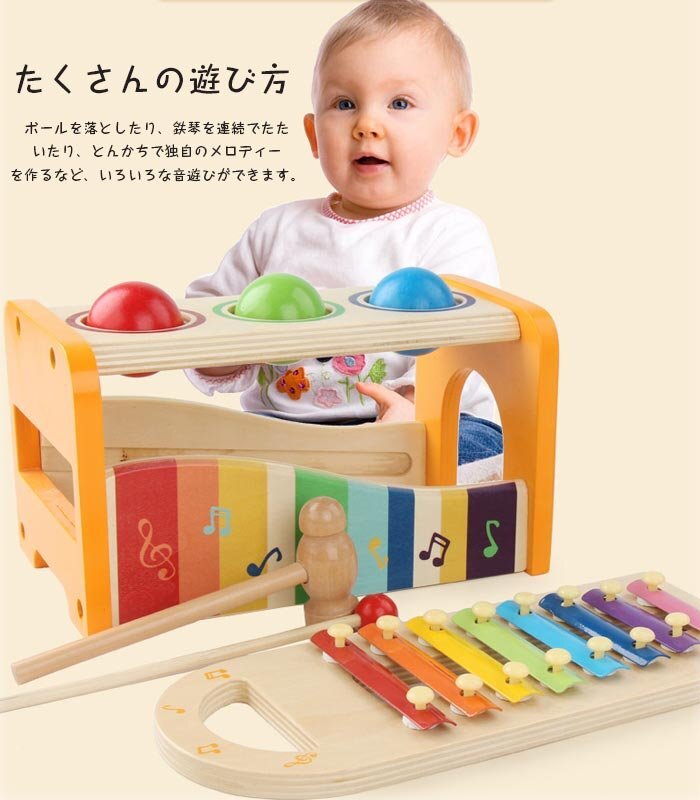 木製 楽器玩具 2in1 鉄琴?ハンマートイボール 木製 鉄琴あそび 音楽 演奏 楽器玩具 子供 男の子 女の子 幼児 知育玩具 知育おもちゃ☆1点 [浏览原始页面]