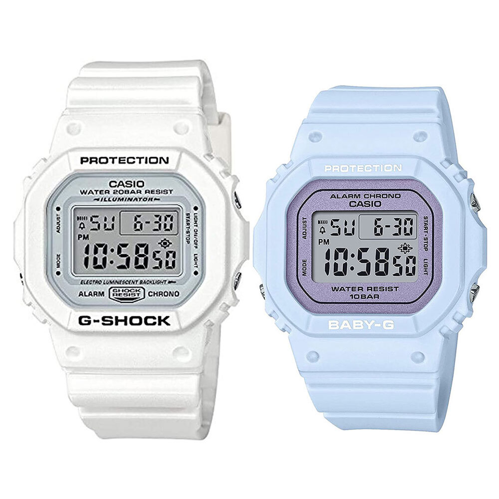 ペアウォッチ Gショック ベビーG カシオ カジュアル アウトドア キャンプ スポーツ 見やすい スクエアモデル プレゼント ギフト お祝い 夫婦 カップル 小型 薄型 メンズ レディース 腕時計 デジタル DW-5600MW-7BGD-565SC-2CASIO G-SHOCK/Baby-G 世界中で人気をあつめる人気ブランド★★★こちらの商品は、腕時計2本セットのペア商品になります。★★★お二人の大切な記念日の思い出に、形に残る腕時計を…。ペアウォッチは贈り物に、記念品におすすめです。-------------------------------------------------------【G-SHOCK】夏の手元に爽やかさを加える、ホワイトをテーマカラーにしたモデル。【BABY-G】ベースモデルにはコンパクトなサイズが人気のBGD-565をセレクト。【注意書き】※こちらの商品は時間合わせをせず、入荷したままの状態で発送しております。予めご了承ください。■ブランド:CASIO G-SHOCK/BABY-G(カシオ ジーショック/ベビージー)(海外モデル)■クオーツ(電池式)【共通】■機能:・耐衝撃構造(ショックレジスト)・ケース・ベゼル材質:樹脂・樹脂バンド・無機ガラス・ストップウオッチ・タイマー・マルチアラーム・時報・フルオートカレンダー・報音フラッシュ機能・12/24時間制表示切替・平均月差:±15秒【G-SHOCK】■防水性:20気圧防水■機能:・EDバックライト■ケースサイズ(H×W×D):48.9×42.8×13.4mm■質量:53g【BABY-G】■防水性:10気圧防水■機能:・LEDバックライト■ケースサイズ(H×W×D):42.1×37.9×11.3mm■質量:30g■ベルトカラー:ホワイト/パステルブルー■ブランド専用BOX■保証期間:1年間DW-5600MW-7/BGD-565SC-2