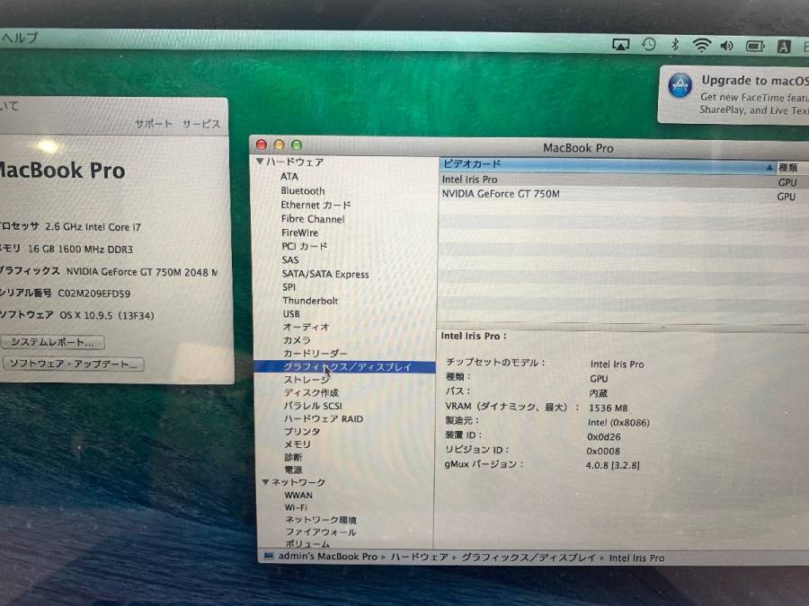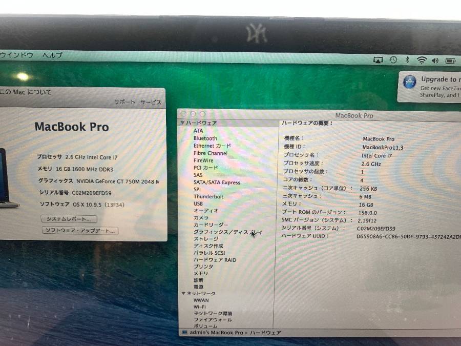 メーカー:Apple アップル シリーズ:MacBook Pro CPU:i7 2.6GHz メモリ:16GB ストレージ:SSD512GB グラフィック:NVIDIA GeForce GT 750M 2048MB 配列:英語 充放電回数:913回 初回ログインパスワード:1111 シリアル:C02M209EFD59 ※仕様の詳細につきましては、メーカーサイトをご確認ください※ |