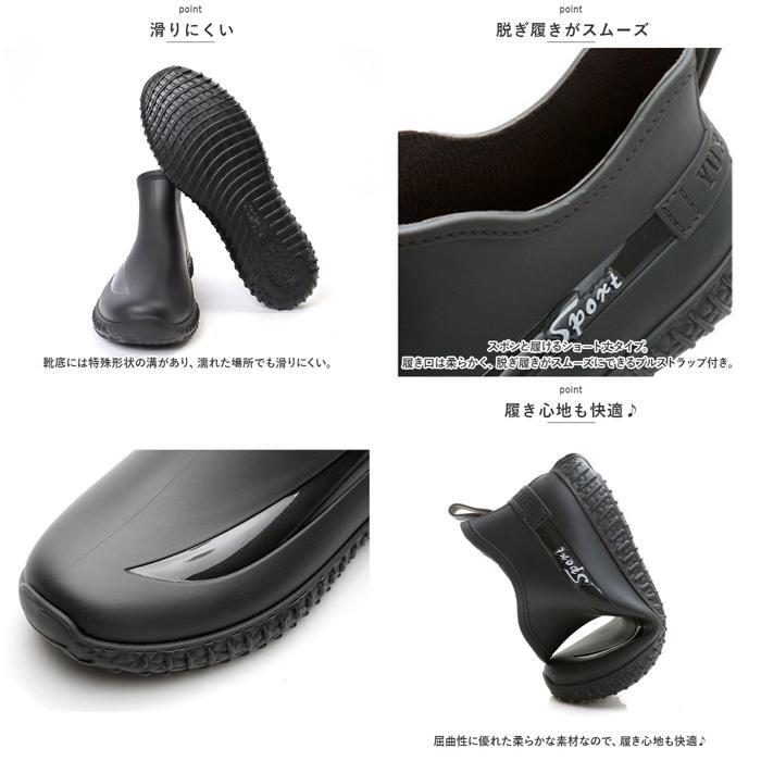 | 商品説明 | ・・雨の日のお出かけやアウトドアシーンで活躍する、ショート丈のレインブーツ。 ・【水や汚れに強い】 ・水や汚れに強いPVC素材を採用。雨の日も雪の日も足元を気にすることなく安心して履ける。 ・【履き心地も快適♪】 ・屈曲性に優れた柔らかな素材なので、履き心地も快適♪ ・【脱ぎ履きがスムーズ】 ・スポンと履けるショート丈タイプ。履き口は柔らかく、脱ぎ履きがスムーズにできるプルストラップ付き。 ・【滑りにくい】 ・靴底には特殊形状の溝があり、濡れた場所でも滑りにくい。 ・【いつも清潔】 ・中敷きは取り外しが可能。こまめに乾燥させたり水洗いすることで、常に清潔が保てるのがうれしい。 ・【雨の日も気分をUP】 ・ミッドソールのさりげないラインがアクセント。コーデのポイントになるカラーが憂鬱な雨の日の気分をUP! ・【ガーデニングやアウトドアにも】 ・雨の日のお出かけ用に。ガーデニングやアウトドアにも大活躍。 |