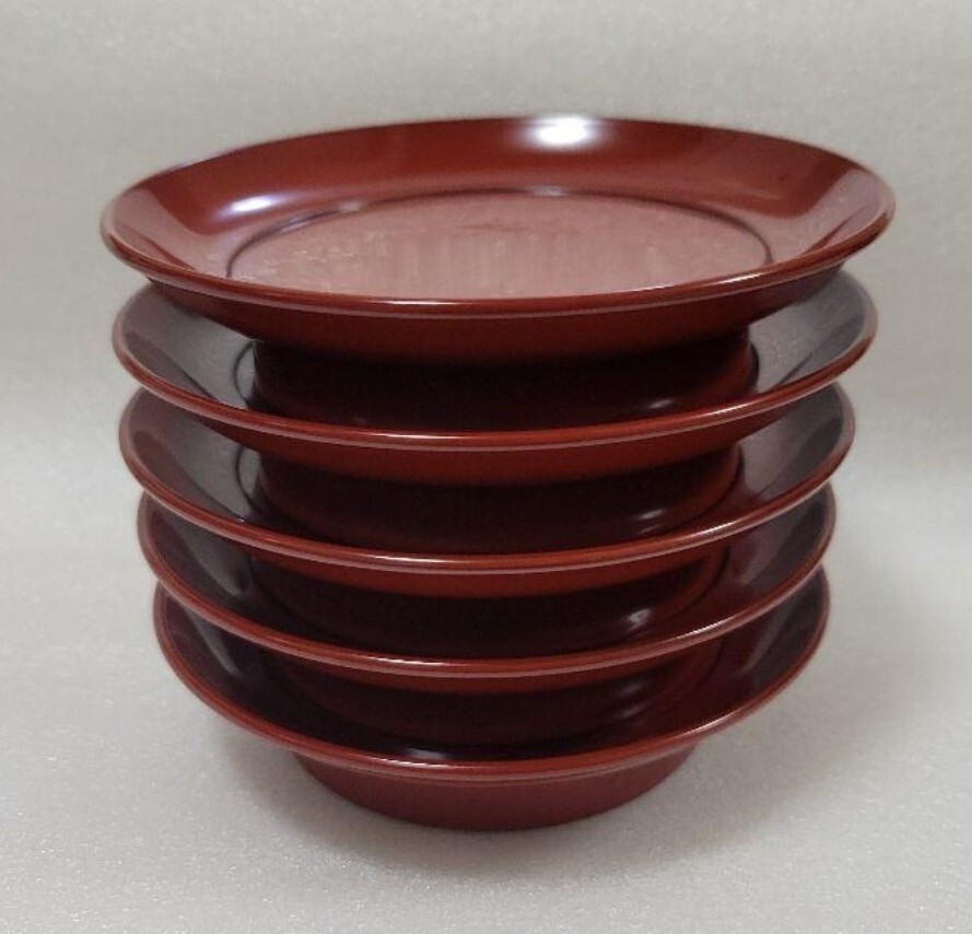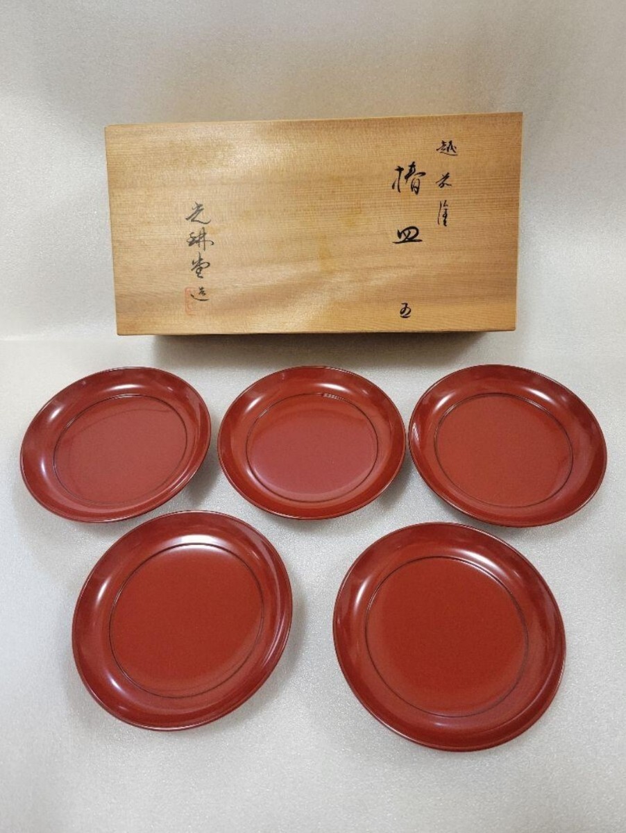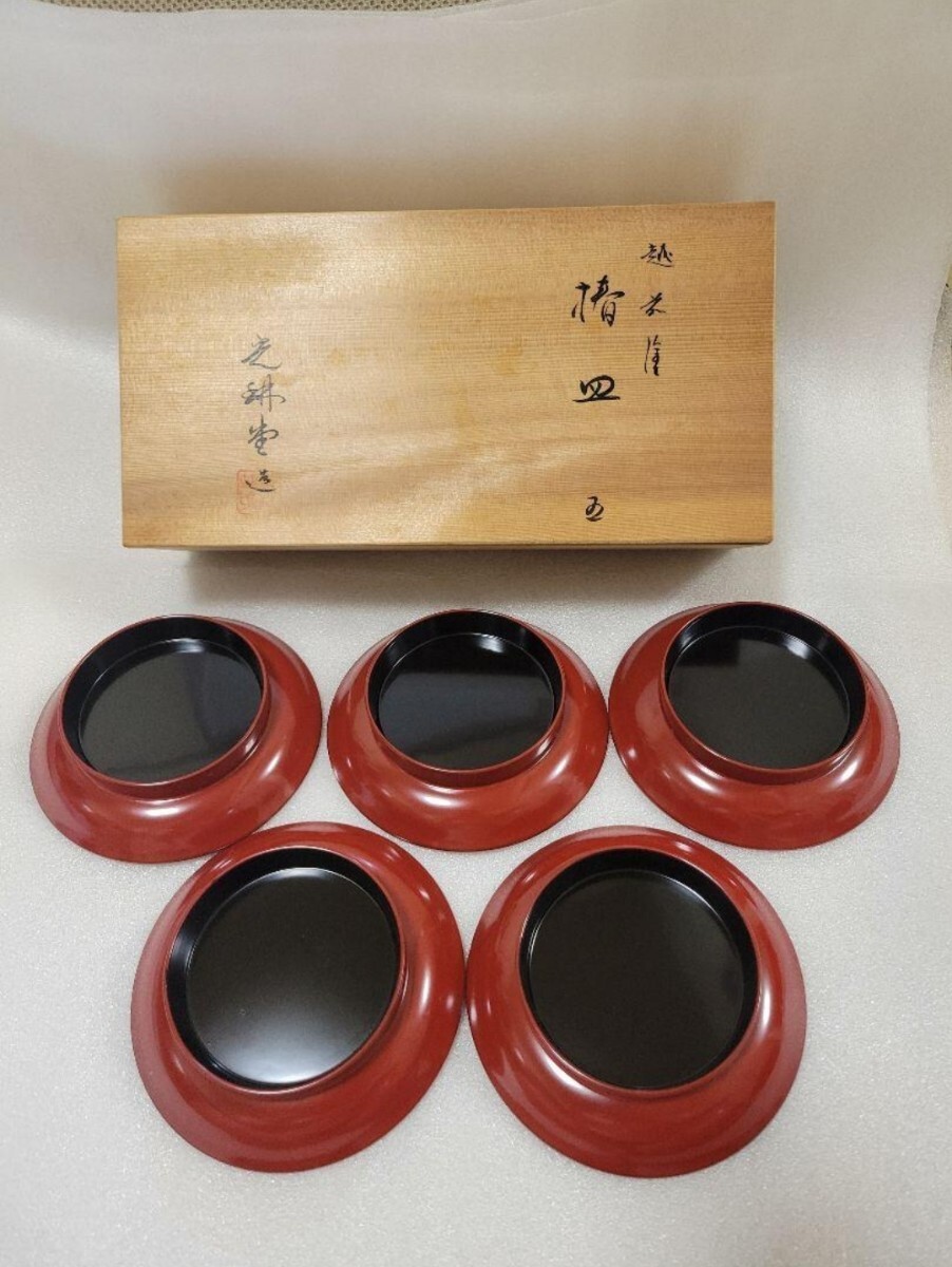 越前塗 漆器 光琳堂 椿皿 5枚セット古代朱 漆塗 木箱入り 未使用品 [浏览原始页面]